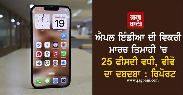 ਨਵੀਂ ਦਿੱਲੀ- ਜਨਵਰੀ-ਮਾਰਚ 2025 ਦੀ ਤਿਮਾਹੀ ਵਿੱਚ ਭਾਰਤ ਵਿੱਚ ਐਪਲ ਦੀ ਆਈਫੋਨ ਸਪਲਾਈ ਵਿੱਚ ਸਾਲ-ਦਰ-ਸਾਲ 25 ਪ੍ਰਤੀਸ਼ਤ ਦਾ ਵਾਧਾ ਹੋਇਆ। ਇਸ ਮਿਆਦ ਦੇ ਦੌਰਾਨ ਇਸਦਾ ਬਾਜ਼ਾਰ ਹਿੱਸਾ ਵੀ ਅੱਠ ਪ੍ਰਤੀਸ਼ਤ ਤੱਕ ਵਧ ਗਿਆ। ਸਾਈਬਰਮੀਡੀਆ ਰਿਸਰਚ (CMR) ਵੱਲੋਂ ਸੋਮਵਾਰ ਨੂੰ ਜਾਰੀ ਕੀਤੀ ਗਈ ਇੱਕ ਰਿਪੋਰਟ ਦੇ ਅਨੁਸਾਰ ਜਨਵਰੀ-ਮਾਰਚ 2025 ਦੀ ਤਿਮਾਹੀ ਵਿੱਚ ਭਾਰਤ ਦੇ ਸਮੁੱਚੇ ਸਮਾਰਟਫੋਨ ਬਾਜ਼ਾਰ ਵਿੱਚ ਚੀਨੀ ਸਮਾਰਟਫੋਨ ਨਿਰਮਾਤਾ ਵੀਵੋ ਦੀ ਹਿੱਸੇਦਾਰੀ 20 ਪ੍ਰਤੀਸ਼ਤ ਸੀ। ਇਸ ਨਾਲ ਇਸਨੇ ਭਾਰਤੀ ਸਮਾਰਟਫੋਨ ਬਾਜ਼ਾਰ ਵਿੱਚ ਆਪਣਾ ਦਬਦਬਾ ਬਣਾਈ ਰੱਖਿਆ। ਜਦੋਂ ਕਿ ਦੱਖਣੀ ਕੋਰੀਆਈ ਕੰਪਨੀ ਸੈਮਸੰਗ 18 ਪ੍ਰਤੀਸ਼ਤ ਬਾਜ਼ਾਰ ਹਿੱਸੇਦਾਰੀ ਨਾਲ ਭਾਰਤੀ ਬਾਜ਼ਾਰ ਵਿੱਚ ਦੂਜੇ ਸਥਾਨ 'ਤੇ ਰਹੀ ਅਤੇ Xiaomi 13 ਪ੍ਰਤੀਸ਼ਤ ਬਾਜ਼ਾਰ ਹਿੱਸੇਦਾਰੀ ਨਾਲ ਤੀਜੇ ਸਥਾਨ 'ਤੇ ਰਹੀ।