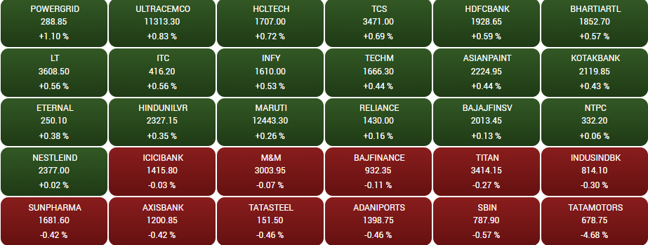 ਮੁੰਬਈ - ਅੱਜ ਯਾਨੀ 16 ਜੂਨ ਨੂੰ ਏਸ਼ੀਆਈ ਬਾਜ਼ਾਰਾਂ ਵਿੱਚ ਤੇਜ਼ੀ ਦਰਮਿਆਨ ਸ਼ੁਰੂਆਤੀ ਕਾਰੋਬਾਰ ਵਿੱਚ ਸੈਂਸੈਕਸ ਅਤੇ ਨਿਫਟੀ ਵਿੱਚ ਤੇਜ਼ੀ ਦੇਖਣ ਨੂੰ ਮਿਲੀ। ਸੈਂਸੈਕਸ ਲਗਭਗ 154.60 ਅੰਕ ਭਾਵ 0.19% ਦੇ ਵਾਧੇ ਨਾਲ 81,273.20 ਦੇ ਪੱਧਰ 'ਤੇ ਕਾਰੋਬਾਰ ਕਰਦਾ ਦੇਖਿਆ ਜਾ ਰਿਹਾ ਹੈ। ਸੈਂਸੈਕਸ ਦੇ 21 ਸਟਾਕ ਵਾਧੇ ਨਾਲ ਅਤੇ 9 ਸਟਾਕ ਗਿਰਾਵਟ ਨਾਲ ਕਾਰੋਬਾਰ ਕਰਦੇ ਦੇਖੇ ਜਾ ਰਹੇ ਹਨ। ਸੈਂਸੈਕਸ 'ਤੇ ਸੂਚੀਬੱਧ 30 ਕੰਪਨੀਆਂ ਵਿੱਚੋਂ, ਪਾਵਰ ਗਰਿੱਡ, ਅਲਟਰਾਟੈਕ ਸੀਮੈਂਟ, ਭਾਰਤੀ ਏਅਰਟੈੱਲ, ਲਾਰਸਨ ਐਂਡ ਟੂਬਰੋ, ਏਸ਼ੀਅਨ ਪੇਂਟਸ, ਐਨਟੀਪੀਸੀ, ਟਾਟਾ ਕੰਸਲਟੈਂਸੀ ਸਰਵਿਸਿਜ਼ ਅਤੇ ਇਨਫੋਸਿਸ ਸਭ ਤੋਂ ਵੱਧ ਲਾਭ ਪ੍ਰਾਪਤ ਕਰਨ ਵਾਲੇ ਰਹੇ। ਟਾਟਾ ਮੋਟਰਜ਼, ਐਕਸਿਸ ਬੈਂਕ, ਅਡਾਨੀ ਪੋਰਟਸ ਅਤੇ ਕੋਟਕ ਮਹਿੰਦਰਾ ਬੈਂਕ ਘਾਟੇ ਵਿੱਚ ਰਹੇ।