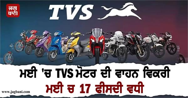ਨਵੀਂ ਦਿੱਲੀ- ਟੀਵੀਐੱਸ ਮੋਟਰ ਕੰਪਨੀ ਦੀ ਮਈ 'ਚ ਕੁੱਲ ਵਿਕਰੀ 17 ਫੀਸਦੀ ਵਾਧੇ ਨਾਲ 4,31,275 ਇਕਾਈ ਰਹੀ ਹੈ। ਕੰਪਨੀ ਨੇ ਪਿਛਲੇ ਸਾਲ ਮਈ 'ਚ ਕੁੱਲ 3,69,914 ਵਾਹਨ ਵੇਚੇ। ਟੀਵੀਐੱਸ ਮੋਟਰ ਕੰਪਨੀ ਨੇ ਐਤਵਾਰ ਨੂੰ ਇਕ ਬਿਆਨ 'ਚ ਕਿਹਾ ਕਿ ਮਈ 'ਚ ਦੋਪਹੀਆ ਵਾਹਨਾਂ ਦੀ ਵਿਕਰੀ 16 ਫੀਸਦੀ ਵਧੀ ਹੈ। ਇਸ ਸੈਗਮੈਂਟ 'ਚ ਵਿਕਰੀ ਮਈ 2024 'ਚ ਵੱਧ ਕੇ 4,16,166 ਇਕਾਈਹੋ ਗਈ, ਜੋ ਮਈ 2024 'ਚ 3,59,590 ਇਕਾਈ ਸੀ।