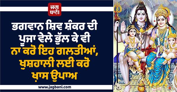 ਜਲੰਧਰ (ਬਿਊਰੋ) - ਹਿੰਦੂ ਧਰਮ ਵਿਚ ਸੋਮਵਾਰ ਦੇ ਦਿਨ ਭਗਵਾਨ ਸ਼ਿਵ ਜੀ ਦੀ ਪੂਜਾ ਕਰਨ ਦਾ ਬਹੁਤ ਮਹੱਤਵ ਮੰਨਿਆ ਜਾਂਦਾ ਹੈ। ਮਾਨਤਾ ਅਨੁਸਾਰ ਇਸ ਦਿਨ ਭੋਲੇਨਾਥ ਦੀ ਪੂਜਾ ਕਰਨ ਨਾਲ ਵਿਅਕਤੀ ਦੀਆਂ ਸਾਰੀਆਂ ਮਨੋਕਾਮਨਾਵਾਂ ਪੂਰੀਆਂ ਹੋ ਜਾਂਦੀਆਂ ਹਨ। ਇਸ ਦਿਨ ਕਈ ਲੋਕ ਭਗਵਾਨ ਸ਼ਿਵ ਜੀ ਦੀ ਪੂਜਾ ਕਰਨ ਦੇ ਨਾਲ-ਨਾਲ ਵਰਤ ਵੀ ਰੱਖਦੇ ਹਨ। ਵਿਸ਼ੇਸ਼ ਤੌਰ 'ਤੇ ਇਸ ਦਿਨ ਵਿਆਹੁਤਾ ਜੋੜੇ ਜੇਕਰ ਮੰਦਰ ਵਿਚ ਜਾ ਕੇ ਪੂਜਾ ਕਰਦੇ ਹਨ ਤਾਂ ਉਨ੍ਹਾਂ ਦੀ ਜ਼ਿੰਦਗੀ 'ਚ ਸੁੱਖ ਆਉਂਦੇ ਹਨ। ਜੇਕਰ ਇਨ੍ਹਾਂ ਦੀ ਪੂਜਾ ਅਰਚਨਾ ਵਿਚ ਕਿਸੇ ਪ੍ਰਕਾਰ ਦੀ ਭੁੱਲ ਹੋ ਜਾਵੇ ਤਾਂ ਭਗਵਾਨ ਨਾਰਾਜ਼ ਹੋ ਸਕਦੇ ਹਨ। ਇਸ ਲਈ ਹਰ ਇਕ ਵਿਅਕਤੀ ਨੂੰ ਇਨ੍ਹਾਂ ਦੀ ਪੂਜਾ ਵਿਚ ਕੁਝ ਸਾਵਧਾਨੀਆਂ ਜ਼ਰੂਰ ਵਰਤਨੀਆਂ ਚਾਹੀਦੀਆਂ ਹਨ। ਆਓ ਜਾਣਦੇ ਹਾਂ ਇਨ੍ਹਾਂ ਦੀ ਪੂਜਾ 'ਚ ਕਿਹੜੀਆਂ ਗੱਲਾਂ ਦਾ ਧਿਆਨ ਰੱਖਣਾ ਚਾਹੀਦਾ ਹੈ।