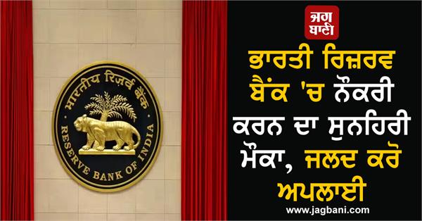 ਨਵੀਂ ਦਿੱਲੀ- ਭਾਰਤੀ ਰਿਜ਼ਰਵ ਬੈਂਕ (ਆਰ.ਬੀ.ਆਈ.) 'ਚ ਨੌਕਰੀ ਕਰਨ ਦੇ ਇਛੁੱਕ ਨੌਜਵਾਨਾਂ ਲਈ ਚੰਗੀ ਖ਼ਬਰ ਹੈ। ਆਰ.ਬੀ.ਆਈ. ਨੇ ਅਸਿਸਟੈਂਟ ਅਹੁਦਿਆਂ 'ਤੇ ਭਰਤੀ ਕੱਢੀ ਹੈ।