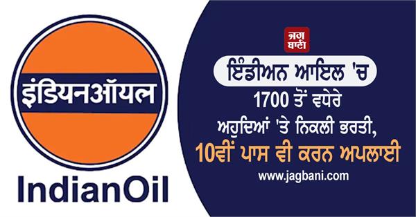 ਨਵੀਂ ਦਿੱਲੀ- ਇੰਡੀਅਨ ਆਇਲ ਕਾਰਪੋਰੇਸ਼ਨ ਲਿਮਿਟੇਡ (IOCL) ਨੇ ਅਪ੍ਰੈਂਟਿਸ ਦੀਆਂ ਅਸਾਮੀਆਂ ਲਈ ਉਮੀਦਵਾਰਾਂ ਤੋਂ ਅਰਜ਼ੀਆਂ ਮੰਗੀਆਂ ਹਨ। ਯੋਗ ਉਮੀਦਵਾਰ IOCL ਦੀ ਅਧਿਕਾਰਤ ਸਾਈਟ iocl.com 'ਤੇ ਜਾ ਕੇ ਅਰਜ਼ੀ ਦੇ ਸਕਦੇ ਹਨ। ਉਮੀਦਵਾਰ 3 ਜਨਵਰੀ 2023 ਤੱਕ ਅਪਲਾਈ ਕਰ ਸਕਦੇ ਹਨ। ਇਸ ਭਰਤੀ ਤਹਿਤ ਕੁੱਲ 1747 ਅਸਾਮੀਆਂ ਭਰੀਆਂ ਜਾਣਗੀਆਂ।