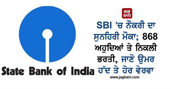 SBI 'ਚ ਇਸ ਭਰਤੀ ਜ਼ਰੀਏ ਕੁੱਲ 868 ਅਹੁਦਿਆਂ ਨੂੰ ਭਰਿਆ ਜਾਵੇਗਾ।