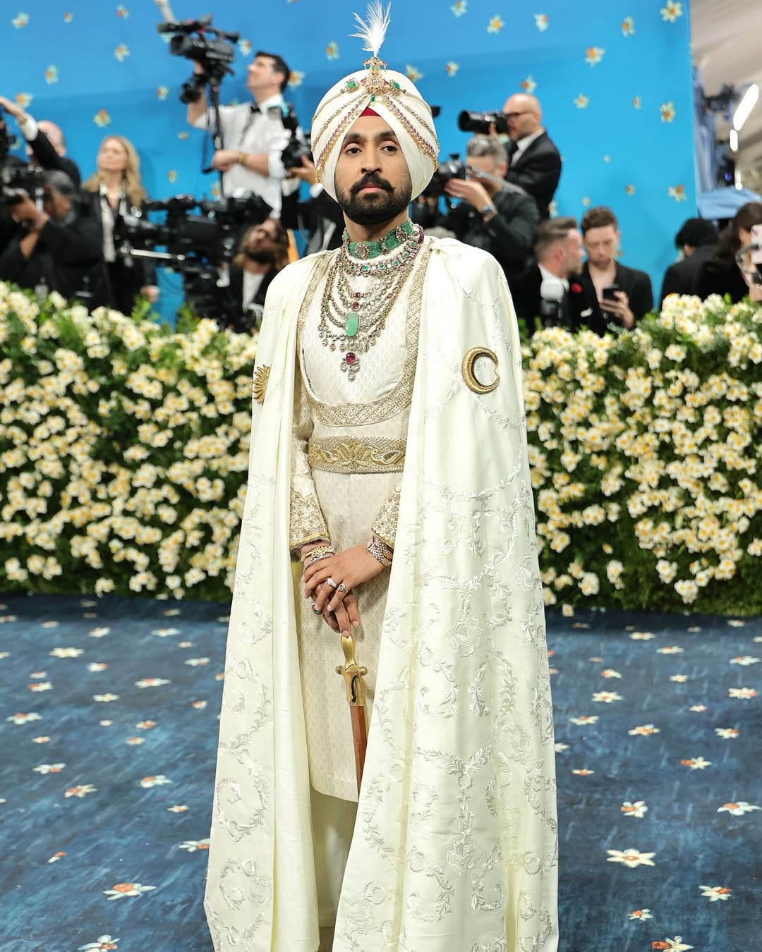 ਦਿਲਜੀਤ ਨੇ ਮੇਟ ਗਾਲਾ 2025 ਵਿੱਚ ਆਪਣੇ ਲੁੱਕ ਨਾਲ ਮਹਾਰਾਜਾ ਭੁਪਿੰਦਰ ਸਿੰਘ ਨੂੰ ਸ਼ਰਧਾਂਜਲੀ ਭੇਟ ਕੀਤੀ ਹੈ। ਦਿਲਚਸਪ ਗੱਲ ਇਹ ਹੈ ਕਿ ਉਹ ਮੇਟ ਗਾਲਾ ਵਿੱਚ ਡੈਬਿਊ ਕਰਨ ਵਾਲੇ ਪਹਿਲੇ ਦਸਤਾਰਧਾਰੀ ਅਦਾਕਾਰ-ਗਾਇਕ ਬਣੇ। ਗਾਇਕ ਨੇ ਪ੍ਰਬਲ ਗੁਰੰਗ ਵੱਲੋਂ ਡਿਜ਼ਾਈਨ ਕੀਤਾ ਗਿਆ ਪਹਿਰਾਵਾ ਪਹਿਨ ਕੇ ਲੋਕਾਂ ਦਾ ਧਿਆਨ ਆਪਣੇ ਵੱਲ ਖਿੱਚਿਆ। ਦਿਲਜੀਤ ਨੇ ਆਲ ਵ੍ਹਾਈਟ ਲੁੱਕ ਕੈਰੀ ਕੀਤਾ ਹੈ, ਜਿਸ ਵਿੱਚ ਉਨ੍ਹਾਂ ਨੇ ਵ੍ਹਾਈਟ ਸ਼ੇਰਵਾਨੀ ਦੇ ਨਾਲ ਪੱਗ ਪਹਿਨੀ ਹੋਈ ਹੈ। ਉਨ੍ਹਾਂ ਨੇ ਆਪਣੇ ਲੁੱਕ ਨੂੰ ਫਲੋਰ ਲੈਂਥ ਕੈਪ ਨਾਲ ਹਾਈਲਾਈਟ ਕੀਤਾ ਹੈ, ਜਿਸ ਉੱਤੇ ਪੰਜਾਬੀ ਸ਼ਬਦ ਲਿਖੇ ਹੋਏ ਸਨ। ਦਿਲਜੀਤ ਦੇ ਮੇਟ ਗਾਲਾ ਲੁੱਕ ਨੇ ਉਨ੍ਹਾਂ ਦੇ ਪ੍ਰਸ਼ੰਸਕਾਂ ਦੇ ਦਿਲਾਂ ਨੂੰ ਛੂਹ ਲਿਆ, ਕਿਉਂਕਿ ਬਹੁਤ ਸਾਰੇ ਲੋਕਾਂ ਨੇ ਉਨ੍ਹਾਂ ਦੀ ਪ੍ਰਸ਼ੰਸਾ ਕੀਤੀ ਅਤੇ ਉਨ੍ਹਾਂ ਦੇ ਪਹਿਰਾਵੇ ਪਿੱਛੇ ਉਨ੍ਹਾਂ ਦੇ ਵਿਚਾਰ ਦੀ ਸ਼ਲਾਘਾ ਕੀਤੀ। ਇੱਕ ਸੋਸ਼ਲ ਮੀਡੀਆ ਉਪਭੋਗਤਾ ਨੇ ਟਿੱਪਣੀ ਕੀਤੀ, "ਬਹੁਤ ਮਾਣ ਹੈ।" ਇੱਕ ਹੋਰ ਨੇ ਲਿਖਿਆ, 'ਰੋਂਗਟੇ ਖੜ੍ਹੇ ਹੋ ਗਏ।