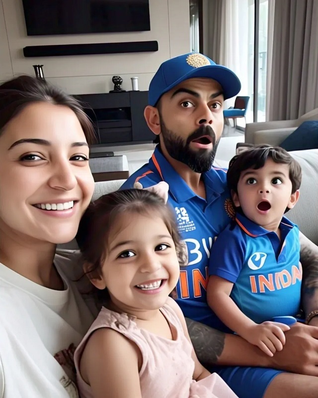 ਇਸ ਸਭ ਦੇ ਵਿਚਕਾਰ ਅਨੁਸ਼ਕਾ-ਵਿਰਾਟ ਦੀ ਇੱਕ ਫੋਟੋ ਵਾਇਰਲ ਹੋ ਰਹੀ ਹੈ ਜਿਸ ਵਿੱਚ ਉਹ ਦੋ ਬੱਚਿਆਂ ਨਾਲ ਸੈਲਫੀ ਲੈਂਦੇ ਦਿਖਾਈ ਦੇ ਰਹੇ ਹਨ। ਇਸਨੂੰ ਦੇਖ ਕੇ ਯੂਜ਼ਰ ਦਾਅਵਾ ਕਰ ਰਹੇ ਹਨ ਕਿ ਇਹ ਅਕਾਏ ਅਤੇ ਵਾਮਿਕਾ ਹਨ। ਦਰਅਸਲ ਬੱਚਿਆਂ ਨਾਲ ਅਨੁਸ਼ਕਾ ਅਤੇ ਵਿਰਾਟ ਦੀ ਇਹ ਫੋਟੋ ਇੱਕ ਫੈਨ ਪੇਜ 'ਤੇ ਸ਼ੇਅਰ ਕੀਤੀ ਗਈ ਸੀ ਜਿਸ ਵਿੱਚ ਵਿਰਾਟ ਅਤੇ ਉਨ੍ਹਾਂ ਦੀ ਗੋਦੀ ਵਿੱਚ ਬੈਠੇ ਬੱਚੇ ਨੇ ਭਾਰਤੀ ਕ੍ਰਿਕਟ ਟੀਮ ਦੀ ਜਰਸੀ ਪਾਈ ਹੋਈ ਹੈ।