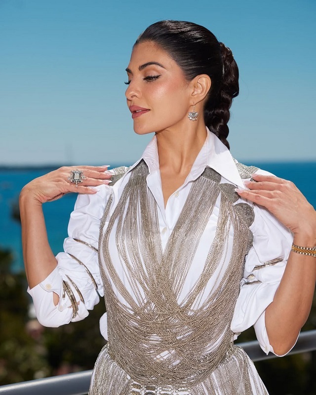 ਜੈਕਲੀਨ ਨੇ ਕਾਨਸ 'ਚ ਆਪਣੀ ਪਹਿਲੀ ਪੇਸ਼ਕਾਰੀ ਲਈ ਗਾਊਨ ਜਾਂ ਡਰੈੱਸ ਦਾ ਚੱਕਰ ਛੱਡ, ਵ੍ਹਾਈਟ ਪੈਂਟਸੂਟ ਨੂੰ ਚੁਣਿਆ। ਇਸ ਦੇ ਨਾਲ ਉਨ੍ਹਾਂ ਨੇ ਤਾਰਿਆਂ ਨਾਲ ਸਜਿਆ ਹੋਇਆ ਇੱਕ ਕਾਰਸੈੱਟ ਪਹਿਨਿਆ। ਜਿਸ ਵਿੱਚ ਉਹ ਇਸ ਸਾਲ ਦੇ ਕਾਨਸ ਦੇ ਨਵੇਂ ਡਰੈੱਸ ਕੋਡ ਨਿਯਮ ਦੀ ਪੂਰੀ ਤਰ੍ਹਾਂ ਪਾਲਣਾ ਕਰਦੀ ਦਿਖਾਈ ਦਿੱਤੀ, ਹਾਲਾਂਕਿ ਉਸਦੀ ਲੁੱਕ ਕਾਨਸ ਵਿੱਚ ਆਈਆਂ ਹਸੀਨਾਵਾਂ ਦੇ ਸਾਹਮਣੇ ਬਹੁਤਾ ਪ੍ਰਭਾਵ ਨਹੀਂ ਪਾ ਸਕਿਆ।