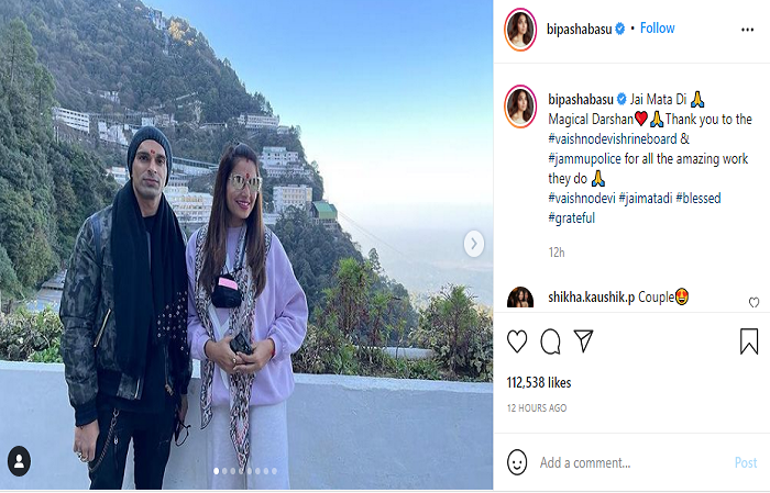 ਇਨ੍ਹਾਂ ਤਸਵੀਰਾਂ ‘ਚ ਬਿਪਾਸ਼ਾ ਬਾਸੂ ਆਪਣੇ ਪਤੀ ਕਰਨ ਸਿੰਘ ਗਰੋਵਰ ਦੇ ਨਾਲ ਨਜ਼ਰ ਆ ਰਹੀ ਹੈ। ਦੋਵਾਂ ਨੇ ਮੱਥੇ ਉੱਤੇ ਜੈ ਮਾਤਾ ਦੀ ਵਾਲੀ ਚੁੰਨੀ ਵੀ ਬੰਨੀ ਹੋਈ ਹੈ। ਉਨ੍ਹਾਂ ਦੇ ਨਾਲ ਕੁਝ ਦੋਸਤ ਵੀ ਨਜ਼ਰ ਆ ਰਹੇ ਹਨ। ਇਸ ਪੋਸਟ ਉੱਤੇ ਵੱਡੀ ਗਿਣਤੀ 'ਚ ਲਾਈਕਸ ਅਤੇ ਪ੍ਰਸ਼ੰਸਕ ਵੀ ਜੈ ਮਾਤਾ ਕਮੈਂਟ 'ਚ ਲਿਖ ਰਹੇ ਹਨ ਅਤੇ ਨਾਲ ਹੀ ਪ੍ਰਾਥਨਾ ਵਾਲਾ ਇਮੋਜ਼ੀ ਵੀ ਪੋਸਟ ਕਰ ਰਹੇ ਹਨ।