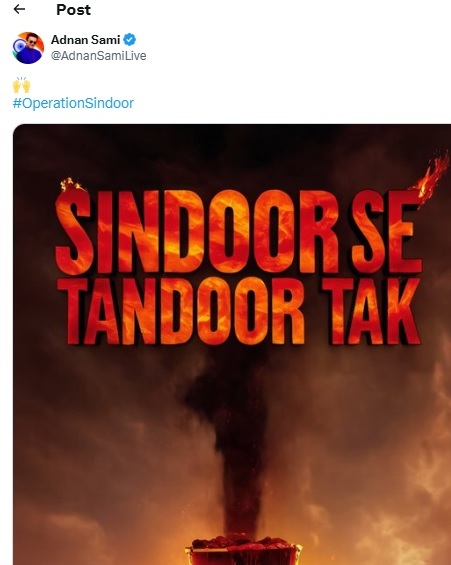 ਇਸ ਤੋਂ ਇਲਾਵਾ ਅਦਨਾਨ ਨੇ ਇੱਕ ਪੋਸਟਰ ਸਾਂਝਾ ਕੀਤਾ ਜਿਸ ਵਿੱਚ ਲਿਖਿਆ ਹੈ- 'ਸਿੰਦੂਰ ਤੋਂ ਤੰਦੂਰ ਤੱਕ।'