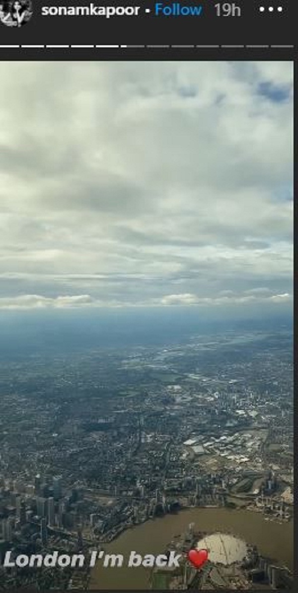 ਦਰਅਸਲ, ਸੋਨਮ ਕਪੂਰ ਨੇ ਆਪਣੇ ਇੰਸਟਾਗ੍ਰਾਮ 'ਤੇ ਇਸ ਗੱਲ ਦੀ ਜਾਣਕਾਰੀ ਦਿੱਤੀ ਹੈ। ਸੋਨਮ ਕਪੂਰ ਨੇ ਇੰਸਟਾਗ੍ਰਾਮ ਸਟੋਰੀ 'ਤੇ ਤਸਵੀਰਾਂ ਸਾਂਝੀਆਂ ਕੀਤੀਆਂ ਹਨ, ਜਿਨ੍ਹਾਂ 'ਚ ਉਹ ਪਤੀ ਨਾਲ ਫਲਾਈਟ 'ਚ ਮਾਸਕ ਪਹਿਨੀ ਨਜ਼ਰ ਆ ਰਹੀ ਹੈ। ਇੱਕ ਤਸਵੀਰ ਫਲਾਈਟ ਦੀ ਖਿੜਕੀ ਤੋਂ ਲਈ ਗਈ, ਜਿਸ ਨੂੰ ਸਾਂਝੀ ਕਰਦਿਆਂ ਸੋਨਮ ਨੇ ਲਿਖਿਆ, 'ਲੰਡਨ ਮੈਂ ਆ ਗਈ ਹਾਂ। ਇੰਨਾ ਸੁੰਦਰ।'