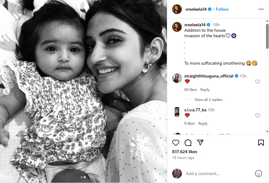 ਮੁੰਬਈ- ਸਾਊਥ ਅਦਾਕਾਰ ਅੱਲੂ ਅਰਜੁਨ ਦੀ ਹਾਲੀਆ ਫਿਲਮ 'ਪੁਸ਼ਪਾ 2' ਦੇ ਆਪਣੇ ਮਸ਼ਹੂਰ ਗੀਤ 'ਕਿਸਿਕ' ਨਾਲ ਪ੍ਰਸਿੱਧੀ ਹਾਸਲ ਕਰਨ ਵਾਲੀ ਸਾਊਥ ਅਦਾਕਾਰਾ ਸ਼੍ਰੀਲੀਲਾ ਦੇ ਘਰ ਨੰਨ੍ਹੇ ਮਹਿਮਾਨ ਦੀ ਕਿਲਕਾਰੀ ਗੂੰਜੀ ਹੈ। ਸ਼੍ਰੀਲੀਲਾ ਨੇ ਆਪਣੇ ਘਰ ਵਿੱਚ ਇੱਕ ਛੋਟੀ ਬੱਚੀ ਦਾ ਸਵਾਗਤ ਕੀਤਾ ਹੈ। ਸ਼੍ਰੀਲੀਲਾ ਨੇ ਆਪਣੀ ਜ਼ਿੰਦਗੀ ਵਿਚ ਆਈ ਇਸ ਨੰਨ੍ਹੀ ਪਰੀ ਦੀਆਂ 2 ਤਸਵੀਰਾਂ ਸੋਸ਼ਲ ਮੀਡੀਆ 'ਤੇ ਸਾਂਝੀਆਂ ਕੀਤੀਆਂ ਹਨ। ਇਨ੍ਹਾਂ ਤਸਵੀਰਾਂ ਵਿੱਚ, ਸ਼੍ਰੀਲੀਲਾ ਉਸ ਬੱਚੀ ਨੂੰ ਮਾਂ ਵਾਂਗ ਪਿਆਰ ਕਰਦੀ ਦਿਖਾਈ ਦੇ ਰਹੀ ਹੈ। ਪਹਿਲੀ ਫੋਟੋ ਵਿੱਚ, ਸ਼੍ਰੀਲੀਲਾ ਬੱਚੀ ਨੂੰ ਚੁੰਮਦੀ ਹੋਈ ਦਿਖਾਈ ਦੇ ਰਹੀ ਹੈ। ਦੂਜੀ ਫੋਟੋ ਵਿੱਚ ਸ਼੍ਰੀਲੀਲਾ ਬੱਚੀ ਨਾਲ ਕੈਮਰੇ ਵੱਲ ਵੇਖਦੇ ਹੋਏ ਮੁਸਕਰਾਉਂਦੀ ਹੋਈ ਪੋਜ਼ ਦੇ ਰਹੀ ਹੈ। ਇਨ੍ਹਾਂ ਤਸਵੀਰਾਂ ਦੇ ਨਾਲ ਸ਼੍ਰੀਲੀਲਾ ਨੇ ਇੱਕ ਕੈਪਸ਼ਨ ਵੀ ਲਿਖੀ- Addition to the house, Invasion of the hearts। ਹਾਲਾਂਕਿ, ਉਨ੍ਹਾਂ ਨੇ ਇਹ ਸਪੱਸ਼ਟ ਨਹੀਂ ਕੀਤਾ ਹੈ ਕਿ ਇਹ ਬੱਚੀ ਉਨ੍ਹਾਂ ਦੇ ਪਰਿਵਾਰ ਦੀ ਮੈਂਬਰ ਹੈ ਜਾਂ ਉਨ੍ਹਾਂ ਨੇ ਫਿਰ ਇਕ ਹੋਰ ਬੱਚੀ ਨੂੰ ਗੋਦ ਲਿਆ ਹੈ।