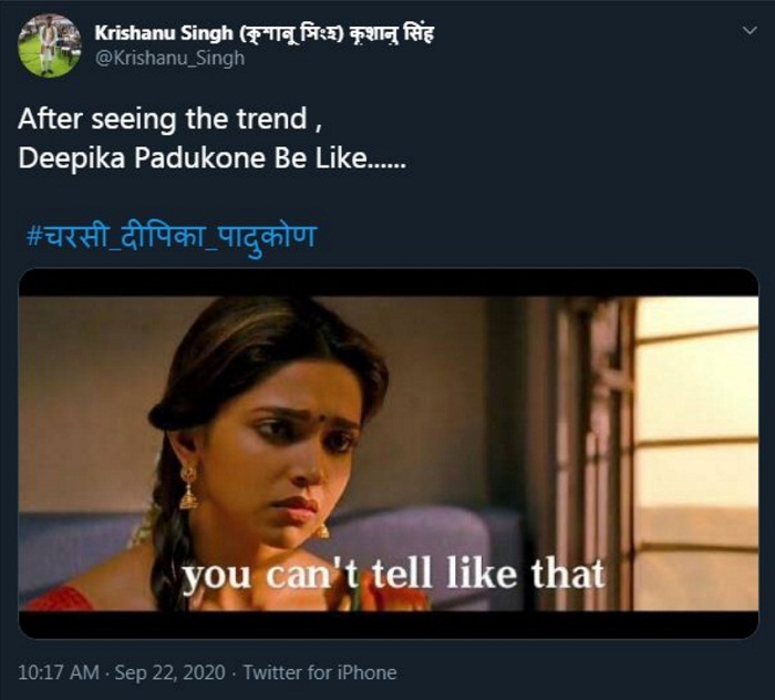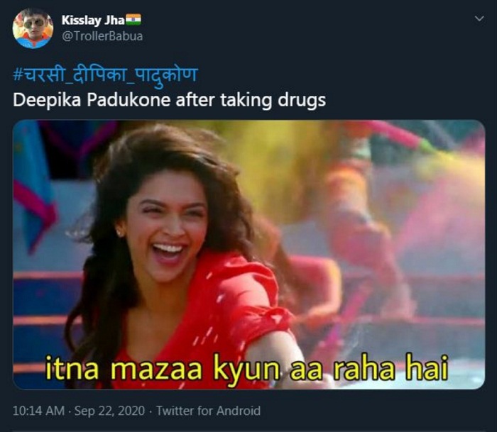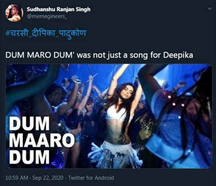ਡਰੱਗ ਚੈਟ ਦਾ ਖ਼ੁਲਾਸਾ ਹੋਣ ਤੋਂ ਬਾਅਦ ਦੀਪਿਕਾ ਸੋਸ਼ਲ ਮੀਡੀਆ ਯੂਜ਼ਰਸ ਦੇ ਨਿਸ਼ਾਨੇ 'ਤੇ ਆ ਗਈ ਹੈ ਅਤੇ ਟਵਿੱਟਰ 'ਤੇ #ਚਰਸੀ ਦੀਪਿਕਾ ਪਾਦੂਕੋਣ ਟਰੈਂਡ ਕਰਨ ਲੱਗਾ। ਇਸ ਦੌਰਾਨ ਲੋਕਾਂ ਨੇ ਤਰ੍ਹਾਂ-ਤਰ੍ਹਾਂ ਦੇ ਕੁਮੈਂਟਸ ਕਰਦੇ ਹੋਏ ਉਸ ਦਾ ਮਜ਼ਾਕ ਉਡਾਇਆ। ਨਾਲ ਹੀ ਉਸ ਦੀ ਫ਼ਿਲਮਾਂ ਦੇ ਸੀਨ ਤੇ ਡਾਇਲਾਗ 'ਤੇ ਆਧਾਰਿਤ ਮੀਮਸ ਵੀ ਸਾਂਝੇ ਕੀਤੇ ਹਨ।