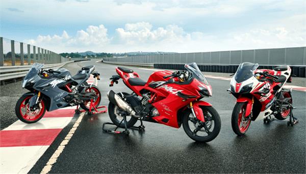 TVS Apache RR 310 ਇੱਕ ਸਪੋਰਟਸ ਬਾਈਕ ਹੈ ਜੋ 6 ਵੇਰੀਐਂਟ ਅਤੇ 3 ਰੰਗਾਂ ਵਿੱਚ ਉਪਲਬਧ ਹੈ। TVS Apache RR 310 ਵਿੱਚ 312.2cc BS6 ਇੰਜਣ ਹੈ ਜੋ 37.48 bhp ਪਾਵਰ ਅਤੇ 29 Nm ਟਾਰਕ ਪੈਦਾ ਕਰਦਾ ਹੈ। ਅੱਗੇ ਅਤੇ ਪਿੱਛੇ ਦੋਵਾਂ ਪਾਸੇ ਡਿਸਕ ਬ੍ਰੇਕਾਂ ਦੇ ਨਾਲ, TVS Apache RR 310 ਐਂਟੀ-ਲਾਕਿੰਗ ਬ੍ਰੇਕਿੰਗ ਸਿਸਟਮ ਦੇ ਨਾਲ ਆਉਂਦਾ ਹੈ। ਇਸ ਅਪਾਚੇ RR 310 ਬਾਈਕ ਦਾ ਭਾਰ 174 ਕਿਲੋਗ੍ਰਾਮ ਹੈ ਅਤੇ ਇਸਦੀ ਫਿਊਲ ਟੈਂਕ ਸਮਰੱਥਾ 11 ਲੀਟਰ ਹੈ।