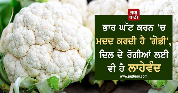 ਇਸ 'ਚ ਕੈਲੋਰੀ ਬਹੁਤ ਹੀ ਘੱਟ ਮਾਤਰਾ 'ਚ ਹੁੰਦੀ ਹੈ। ਜਿਹੜੇ ਲੋਕ ਆਪਣਾ ਭਾਰ ਘੱਟ ਕਰਨਾ ਚਾਹੁੰਦੇ ਹਨ, ਉਨ੍ਹਾਂ ਨੂੰ ਗੋਭੀ ਨੂੰ ਆਪਣੀ ਡਾਈਟ 'ਚ ਜ਼ਰੂਰ ਸ਼ਾਮਲ ਕਰਨਾ ਚਾਹੀਦਾ ਹੈ। ਇਸ ਨਾਲ ਤੁਹਾਡਾ ਭਾਰ ਆਸਾਨੀ ਨਾਲ ਘੱਟ ਹੋ ਜਾਵੇਗਾ।