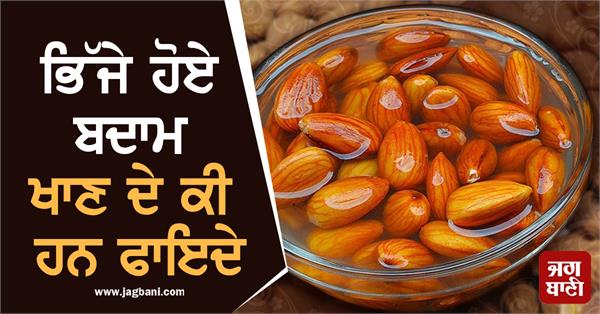ਭਿੱਜੇ ਹੋਏ ਬਦਾਮਾਂ 'ਚ ਐਂਟੀਆਕਸੀਡੈਂਟ ਦਾ ਬਹੁਤ ਚੰਗਾ ਸ੍ਰੋਤ ਹੁੰਦਾ ਹੈ। ਇਹ ਭੁੱਖ ਨੂੰ ਮਹਿਸੂਸ ਨਹੀਂ ਹੋਣ ਦਿੰਦਾ ਅਤੇ ਅਤਿਰਿਕਤ ਫੈਟ ਨੂੰ ਘੱਟ ਕਰਨ 'ਚ ਮਦਦਗਾਰ ਹੁੰਦਾ ਹੈ।