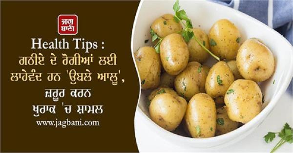 ਉਬਲੇ ਆਲੂ ‘ਚ ਵਿਟਾਮਿਨ, ਕੈਲਸ਼ੀਅਮ ਅਤੇ ਮੈਗਨੀਸ਼ੀਅਮ ਵਰਗੇ ਤੱਤ ਪਾਏ ਜਾਂਦੇ ਹਨ। ਇਹ ਸਾਰੇ ਤੱਤ ਗਠੀਏ ਦੇ ਮਰੀਜ਼ਾਂ ਲਈ ਬਹੁਤ ਫ਼ਾਇਦੇਮੰਦ ਹੁੰਦੇ ਹਨ।