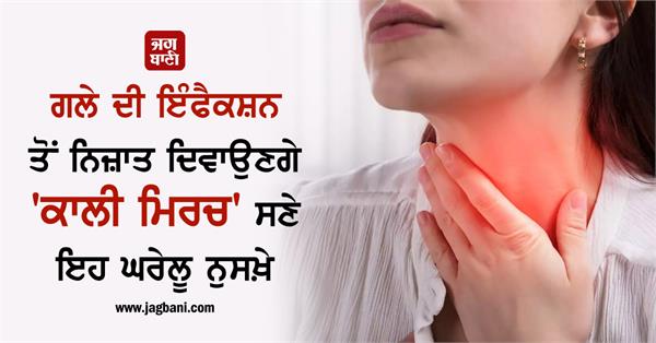 ਗਲੇ ਦੀ ਸਮੱਸਿਆ ਹੋਣ ’ਤੇ ਕਾਲੀਆਂ ਮਿਰਚਾਂ ਅਤੇ ਤੁਲਸੀ ਦੇ ਪੱਤਿਆਂ ਨੂੰ 1 ਕੱਪ ਪਾਣੀ 'ਚ ਪਾ ਕੇ ਉਬਾਲ ਲਓ। ਇਸ ਦਾ ਕਾੜ੍ਹਾ ਬਣਨ ’ਤੇ ਇਸ 'ਚ ਸ਼ਹਿਦ ਮਿਲਾ ਦਿਨ 'ਚ 2 ਵਾਰ ਵਰਤੋਂ ਕਰੋ। ਇਸ ਨਾਲ ਗਲੇ 'ਚ ਖਰਾਸ਼, ਖਾਂਸੀ ਅਤੇ ਇਨਫੈਕਸ਼ਨ ਦੀ ਸਮੱਸਿਆ ਦੂਰ ਹੋ ਜਾਵੇਗੀ।