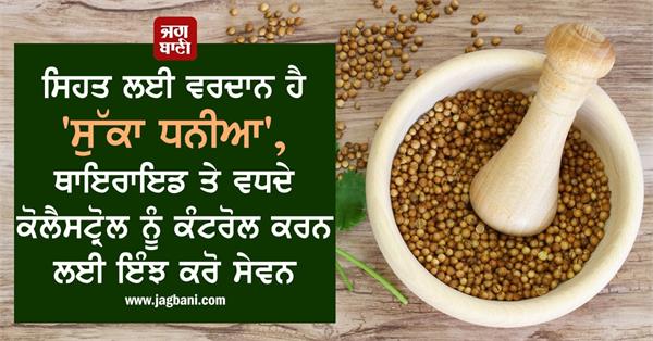 ਜਲੰਧਰ (ਬਿਊਰੋ) : ਸੁੱਕਾ ਧਨੀਆ ਭਾਰਤੀ ਰਸੋਈ ਵਿਚ ਆਮ ਵਰਤੇ ਜਾਂਦੇ ਹਨ। ਇਹ ਨਾ ਸਿਰਫ਼ ਭੋਜਨ ਦੇ ਸੁਆਦ ਨੂੰ ਵਧਾਉਂਦਾ ਹੈ ਸਗੋਂ ਇਸ ਵਿਚ ਐਂਟੀ-ਬੈਕਟਰੀਆ, ਵਿਟਾਮਿਨ ਅਤੇ ਖਣਿਜ ਤੱਤ ਵੀ ਹੁੰਦੇ ਹਨ, ਜੋ ਸਿਹਤ ਲਈ ਫ਼ਾਇਦੇਮੰਦ ਮੰਨੇ ਜਾਂਦੇ ਹਨ। ਗ਼ਲਤ ਖੁਰਾਕ ਕਾਰਨ ਸਰੀਰ 'ਚ ਕੋਲੈਸਟ੍ਰੋਲ ਵਧਣਾ ਸ਼ੁਰੂ ਹੋ ਜਾਂਦਾ ਹੈ। ਕੋਲੈਸਟ੍ਰੋਲ ਦੀਆਂ ਦੋ ਕਿਸਮਾਂ ਹਨ। ਇੱਕ ਚੰਗਾ ਹੈ ਅਤੇ ਦੂਜਾ ਮਾੜਾ ਹੈ। ਖ਼ਰਾਬ ਕੋਲੈਸਟ੍ਰੋਲ ਵਧਣ ਨਾਲ ਸਟ੍ਰੋਕ ਅਤੇ ਦਿਲ ਦੀਆਂ ਬੀਮਾਰੀਆਂ ਹੋ ਜਾਂਦੀਆਂ ਹਨ। ਨਾਲ ਹੀ ਹਾਰਟ ਅਟੈਕ ਦਾ ਖ਼ਤਰਾ ਵੀ ਵਧ ਜਾਂਦਾ ਹੈ। ਇਸ ਲਈ ਕੋਲੈਸਟ੍ਰੋਲ ਨੂੰ ਕੰਟਰੋਲ 'ਚ ਰੱਖਣਾ ਜ਼ਰੂਰੀ ਹੈ। ਸਿਹਤ ਮਾਹਿਰਾਂ ਮੁਤਾਬਕ ਕੋਲੈਸਟ੍ਰੋਲ ਵਧਣ ਨਾਲ ਖੂਨ ਦੀਆਂ ਨਾੜੀਆਂ 'ਚ ਚਰਬੀ ਜਮ੍ਹਾ ਹੋਣ ਲੱਗਦੀ ਹੈ। ਲਾਪਰਵਾਹੀ ਕਾਰਨ ਧਮਨੀਆਂ ਵਿਚ ਖੂਨ ਦਾ ਸੰਚਾਰ ਠੀਕ ਤਰ੍ਹਾਂ ਨਾਲ ਨਹੀਂ ਹੋ ਪਾਉਂਦਾ। ਇਸ ਨਾਲ ਖੂਨ ਦੇ ਥੱਕੇ ਬਣ ਜਾਂਦੇ ਹਨ, ਜੋ ਦਿਲ ਦੇ ਦੌਰੇ ਅਤੇ ਸਟ੍ਰੋਕ ਦਾ ਕਾਰਨ ਬਣਦੇ ਹਨ। ਜੇਕਰ ਤੁਸੀਂ ਵੀ ਵਧਦੇ ਕੋਲੈਸਟ੍ਰੋਲ ਤੋਂ ਪੀੜਤ ਹੋ ਤਾਂ ਤੁਸੀਂ ਖੁਰਾਕ ਸੁਧਾਰ ਕੇ ਅਤੇ ਰੋਜ਼ਾਨਾ ਕਸਰਤ ਕਰਕੇ ਇਸ ਨੂੰ ਕੰਟਰੋਲ ਕਰ ਸਕਦੇ ਹੋ। ਇਸ ਤੋਂ ਇਲਾਵਾ ਖ਼ਰਾਬ ਕੋਲੈਸਟ੍ਰੋਲ ਨੂੰ ਘੱਟ ਕਰਨ ਲਈ ਰੋਜ਼ਾਨਾ ਸਵੇਰੇ ਧਨੀਏ ਦਾ ਪਾਣੀ ਪੀਓ। ਇਸ ਦਾ ਸੇਵਨ ਖਰਾਬ ਕੋਲੈਸਟ੍ਰਾਲ ਨੂੰ ਘੱਟ ਕਰਨ 'ਚ ਮਦਦ ਕਰਦਾ ਹੈ। ਇਸ ਲਈ ਆਓ ਜਾਣਦੇ ਹਾਂ ਸੁੱਕੇ ਧਨੀਏ ਦੇ ਫ਼ਾਇਦੇ….