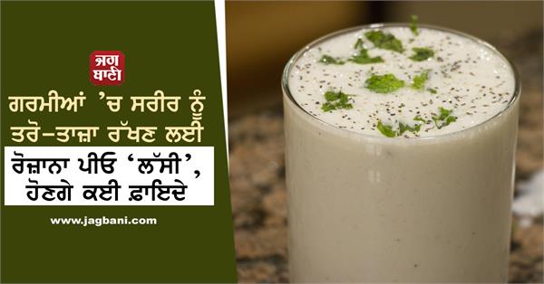 ਜਲੰਧਰ (ਬਿਊਰੋ) - ਲੱਸੀ ਦਾ ਸੁਆਦ ਸਭ ਨੂੰ ਪਸੰਦ ਹੈ। ਲੱਸੀ ਸਾਡੇ ਸਰੀਰ ਦੇ ਨਾਲ-ਨਾਲ ਸੁੰਦਰਤਾ ਲਈ ਵੀ ਬਹੁਤ ਫ਼ਾਇਦੇਮੰਦ ਹੁੰਦੀ ਹੈ। ਤਾਜ਼ੀ ਲੱਸੀ ਦੀ ਰੋਜ਼ਾਨਾ ਵਰਤੋਂ ਕਰਨ ਨਾਲ ਸਰੀਰ ਨੂੰ ਕਈ ਤਰ੍ਹਾਂ ਦੇ ਪੋਸ਼ਕ ਤੱਤ ਆਸਾਨੀ ਨਾਲ ਮਿਲ ਜਾਂਦੇ ਹਨ। ਜੇਕਰ ਤੁਸੀਂ ਭੋਜਨ ਕਰਨ ਤੋਂ ਬਾਅਦ ਲੱਸੀ ਪੀਓਗੇ ਤਾਂ ਇਸ ਨਾਲ ਜੋੜਾਂ ਦੇ ਦਰਦ ਤੋਂ ਰਾਹਤ ਮਿਲੇਗੀ। ਲੱਸੀ ਸਰੀਰ ਨੂੰ ਠੰਡਕ ਪਹੁੰਚਾਉਣ ਦਾ ਕੰਮ ਕਰਦੀ ਹੈ। ਗਰਮੀਆਂ ਵਿਚ ਲੱਸੀ ਨੂੰ ਲੋਕ ਬੜੇ ਸੁਆਦ ਨਾਲ ਪੀਂਦੇ ਹਨ, ਜਿਸ ਨਾਲ ਸਰੀਰ ਤਰੋ-ਤਾਜ਼ਾ ਹੋ ਜਾਂਦਾ ਹੈ....