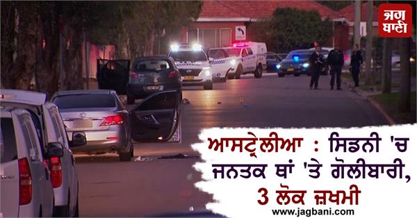 ਸਿਡਨੀ (ਆਈ.ਏ.ਐੱਨ.ਐੱਸ.)- ਆਸਟ੍ਰੇਲੀਆ ਦੇ ਦੱਖਣੀ ਪੱਛਮੀ ਸਿਡਨੀ ਦੇ ਉਪਨਗਰ ਗ੍ਰੀਨਕੇਅਰ ਵਿੱਚ ਐਤਵਾਰ ਸਵੇਰੇ ਇੱਕ ਜਨਤਕ ਸਥਾਨ 'ਤੇ ਹੋਈ ਗੋਲੀਬਾਰੀ ਵਿੱਚ ਦੋ ਪਾਰਕ ਕੀਤੀਆਂ ਕਾਰਾਂ ਵਿੱਚ ਬੈਠੇ ਤਿੰਨ ਵਿਅਕਤੀ ਜ਼ਖ਼ਮੀ ਹੋ ਗਏ। ਸੂਬੇ ਨਿਊ ਸਾਊਥ ਵੇਲਜ਼ (ਐਨ.ਐਸ.ਡਬਲਯੂ.) ਦੀ ਪੁਲਸ ਨੇ ਇਸ ਸਬੰਧੀ ਜਾਣਕਾਰੀ ਦਿੱਤੀ। ਸਮਾਚਾਰ ਏਜੰਸੀ ਸ਼ਿਨਹੂਆ ਦੀ ਰਿਪੋਰਟ ਮੁਤਾਬਕ 25 ਸਾਲ ਦੀ ਉਮਰ ਦਾ ਇੱਕ ਆਦਮੀ ਪਾਰਕ ਕੀਤੇ ਇਕ ਵਾਹਨ ਵਿੱਚ ਜ਼ਖ਼ਮੀ ਪਾਇਆ ਗਿਆ। ਇਸ ਦੇ ਨਾਲ ਹੀ 22 ਸਾਲ ਦੀ ਉਮਰ ਦਾ ਇੱਕ ਆਦਮੀ ਅਤੇ 19 ਸਾਲ ਦੀ ਇੱਕ ਔਰਤ ਇੱਕ ਵੱਖਰੇ ਪਾਰਕ ਕੀਤੇ ਵਾਹਨ ਵਿੱਚ ਜ਼ਖਮੀ ਪਾਏ ਗਏ।