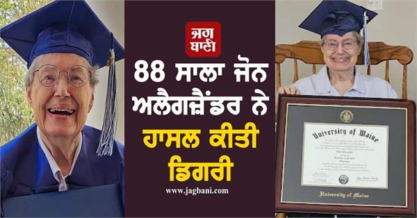ਨਿਊਯਾਰਕ (ਰਾਜ ਗੋਗਨਾ)- ਅਮਰੀਕਾ 'ਚ ਰਹਿਣ ਵਾਲੀ ਇੱਕ ਔਰਤ ਨੇ 88 ਸਾਲ ਦੀ ਉਮਰ ਵਿੱਚ ਆਪਣੇ ਜੀਵਨ ਭਰ ਦੇ ਸੁਪਨੇ ਨੂੰ ਪੂਰਾ ਕੀਤਾ ਹੈ। ਅਤੇ ਸਾਰਿਆਂ ਲਈ ਇੱਕ ਉਦਾਹਰਣ ਬਣ ਗਈ ਹੈ। ਜੋਨ ਅਲੈਗਜ਼ੈਂਡਰ ਨਾਮ ਦੀ ਇਸ ਔਰਤ ਨੇ ਅਮਰੀਕਾ ਦੀ ਮੇਨ ਯੂਨੀਵਰਸਿਟੀ ਤੋਂ ਡਿਗਰੀ ਪ੍ਰਾਪਤ ਕਰਕੇ ਸਾਰਿਆਂ ਨੂੰ ਹੈਰਾਨ ਕਰ ਦਿੱਤਾ। ਦੱਸਿਆ ਜਾਂਦਾ ਹੈ ਕਿ ਛੇ ਦਹਾਕੇ ਪਹਿਲਾਂ ਗਰਭਵਤੀ ਹੋਣ ਕਾਰਨ ਉਸ ਨੂੰ ਆਪਣੀ ਡਿਗਰੀ ਪੂਰੀ ਕਰਨ ਦੀ ਇਜਾਜ਼ਤ ਨਹੀਂ ਦਿੱਤੀ ਗਈ ਸੀ। ਪਰ 65 ਸਾਲਾਂ ਦੀ ਉਡੀਕ ਤੋਂ ਬਾਅਦ ਹੁਣ ਉਸਨੇ ਸਿੱਖਿਆ ਵਿੱਚ ਵਿਗਿਆਨ ਵਿੱਚ ਬੈਚਲਰ ਦੀ ਡਿਗਰੀ ਪ੍ਰਾਪਤ ਕੀਤੀ ਹੈ।