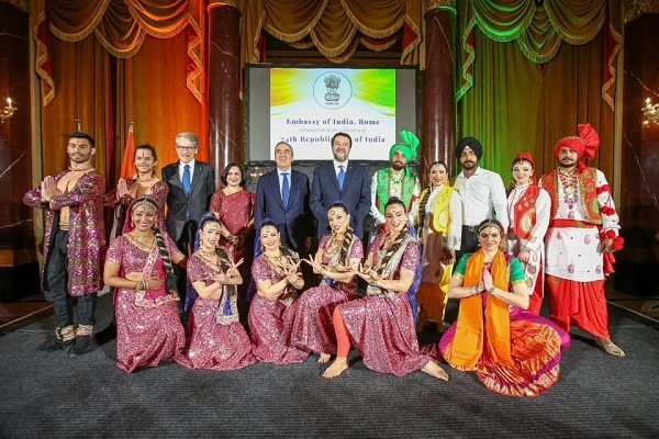 ਮਿਲਾਨ/ਇਟਲੀ (ਸਾਬੀ ਚੀਨੀਆ) ਭਾਰਤੀ ਦੂਤਘਰ ਰੋਮ ਵੱਲੋਂ ਅੰਬੈਸਡਟਰ ਨੀਨਾ ਮਲਹੋਤਰਾ ਦੀ ਅਗਵਾਈ ਵਿਚ ਭਾਰਤ ਅਤੇ ਇਟਲੀ ਦੇ ਮਜ਼ਬੂਤ ਰਾਜਨੀਤਕ ਸਬੰਧਾਂ ਦੀ 75 ਸਾਲਾਂ ਵਰ੍ਹੇਗੰਢ ਨੂੰ ਯਾਦਗਾਰੀ ਬਣਾਉਣ ਲਈ ਵਿਸ਼ਾਲ ਪ੍ਰੋਗਰਾਮ ਕਰਵਾਇਆ ਗਿਆ। ਇਸ ਵਿਚ ਇਟਲੀ ਦੇ ਉੱਪ ਪ੍ਰਧਾਨ ਮੰਤਰੀ ਮੀਤੇਓ ਸਾਲਵਿਨੀ, ਕਈ ਹੋਰ ਮੰਤਰੀਆਂ ਅਤੇ ਸੰਸਦ ਮੈਂਬਰਾਂ ਵੱਲੋਂ ਸ਼ਿਰਕਤ ਕਰਕੇ ਦੋਹਾਂ ਦੇਸ਼ਾਂ ਦੇ ਰਾਜਨੀਤਕ ਸਬੰਧਾਂ ਦੀ ਮਜ਼਼ਬੂਤੀ ਬਾਰੇ ਗੱਲਬਾਤ ਕਰਦੇ ਹੋਏ 75 ਸਾਲ ਪੁਰਾਣੀ ਸਾਂਝ ਨੂੰ ਹੋਰ ਮਜ਼ਬੂਤ ਬਣਾਉਣ ਲਈ ਆਖਿਆ ਗਿਆ।