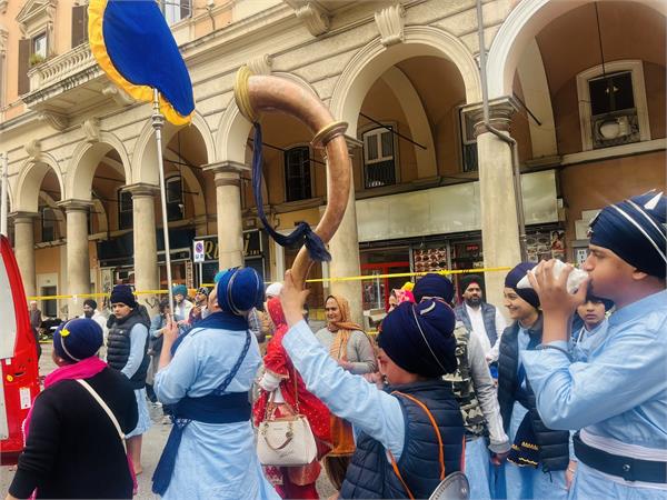 ਰੋਮ (ਕੈਂਥ)- ਰੋਮ ਦੀ ਧਰਤੀ 'ਤੇ ਵਿਸ਼ਾਲ ਨਗਰ ਕੀਰਤਨ ਕੱਢਿਆ ਗਿਆ। ਇਸ ਵਿਸ਼ਾਲ ਨਗਰ ਕੀਰਤਨ ਦੌਰਾਨ ਗੁਰੂ ਦੀਆਂ ਲਾਡਲੀਆਂ ਫ਼ੌਜਾਂ ਨੇ ਧੰਨ ਸ੍ਰੀ ਗੁਰੂ ਗ੍ਰੰਥ ਸਾਹਿਬ ਜੀਓ ਦੀ ਸਵਾਰੀ ਦਾ ਸ਼ਾਹੀ ਸ਼ਾਨੋ ਸ਼ੌਕਤ ਨਾਲ ਸਵਾਗਤ ਕੀਤਾ। ਇਸ ਸਬੰਧੀ ਤਸਵੀਰਾਂ ਵਿਚ ਦੇਖਿਆ ਜਾ ਸਕਦਾ ਹੈ ਕਿ ਕਿਵੇਂ ਗੁਰੂ ਦੀਆਂ ਲਾਡਲੀਆਂ ਫ਼ੌਜਾਂ ਨੇ ਪਾਲਕੀ ਸਾਹਿਬ ਦਾ ਸ਼ਾਨਦਾਰ ਸਵਾਗਤ ਕੀਤਾ।