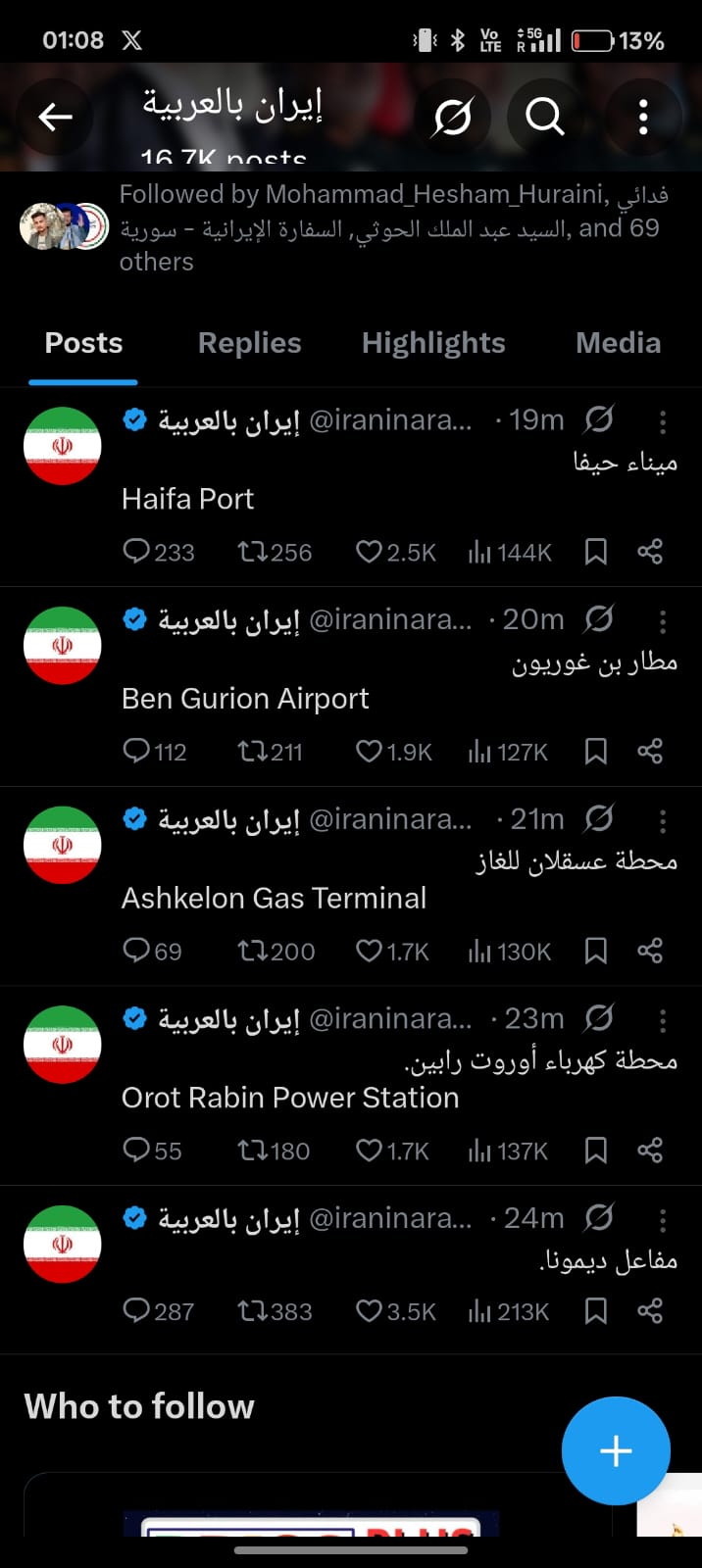 ਈਰਾਨ ਦੇ ਮਿਜ਼ਾਈਲ ਹਮਲੇ ਤੋਂ ਬਾਅਦ, ਪੂਰੇ ਇਜ਼ਰਾਈਲ ਵਿੱਚ ਹਵਾਈ ਹਮਲੇ ਦੇ ਸਾਇਰਨ ਵੱਜਣੇ ਸ਼ੁਰੂ ਹੋ ਗਏ ਹਨ। ਪੂਰੇ ਯਰੂਸ਼ਲਮ ਵਿੱਚ ਧਮਾਕਿਆਂ ਦੀਆਂ ਆਵਾਜ਼ਾਂ ਸੁਣੀਆਂ ਜਾ ਸਕਦੀਆਂ ਸਨ ਅਤੇ ਇਜ਼ਰਾਈਲੀ ਟੀਵੀ ਸਟੇਸ਼ਨਾਂ ਨੇ ਮਿਜ਼ਾਈਲ ਹਮਲੇ ਤੋਂ ਬਾਅਦ ਤੇਲ ਅਵੀਵ ਵਿੱਚ ਧੂੰਆਂ ਉੱਠਦਾ ਦਿਖਾਇਆ। ਜਾਨੀ ਨੁਕਸਾਨ ਦੀ ਤੁਰੰਤ ਕੋਈ ਰਿਪੋਰਟ ਨਹੀਂ ਹੈ।