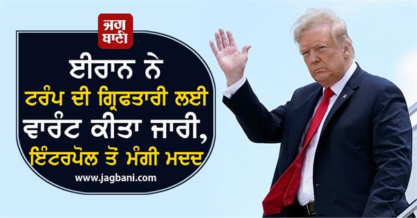 ਤਹਿਰਾਨ (ਏਪੀ): ਈਰਾਨ ਨੇ ਬਗਦਾਦ ਵਿਚ ਡਰੋਨ ਹਮਲੇ ਵਿਚ ਇਕ ਚੋਟੀ ਦੇ ਈਰਾਨੀ ਜਨਰਲ ਦੀ ਮੌਤ ਨੂੰ ਲੈ ਕੇ ਅਮਰੀਕੀ ਰਾਸ਼ਟਰਪਤੀ ਡੋਨਾਲਡ ਟਰੰਪ ਤੇ ਦਰਜਨਾਂ ਹੋਰਾਂ ਲੋਕਾਂ ਦੀ ਗ੍ਰਿਫਤਾਰੀ ਦੇ ਲਈ ਵਾਰੰਟ ਜਾਰੀ ਕਰਕੇ ਇਸ ਦੇ ਲਈ ਇੰਟਰਪੋਲ ਤੋਂ ਮਦਦ ਮੰਗੀ ਹੈ। ਇਕ ਸਥਾਨਕ ਪ੍ਰੋਸੀਕਿਊਸ਼ਨ ਨੇ ਸੋਮਵਾਰ ਨੂੰ ਇਹ ਜਾਣਕਾਰੀ ਦਿੱਤੀ।