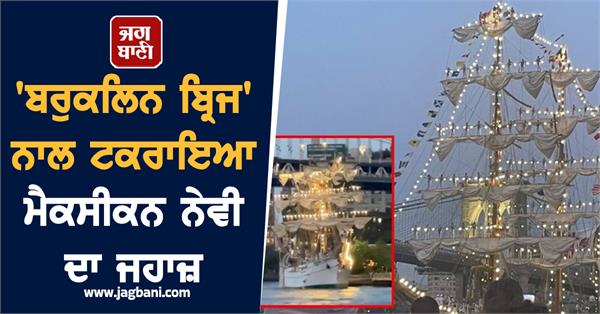 ਨਿਊਯਾਰਕ (ਭਾਸ਼ਾ)- ਮੈਕਸੀਕਨ ਨੇਵੀ ਦਾ ਇੱਕ ਸਿਖਲਾਈ ਜਹਾਜ਼, ਜਿਸ ਵਿੱਚ 200 ਤੋਂ ਵੱਧ ਲੋਕ ਸਵਾਰ ਸਨ, ਨਿਊਯਾਰਕ ਦੇ ਬਰੁਕਲਿਨ ਬ੍ਰਿਜ ਨਾਲ ਟਕਰਾ ਗਿਆ। ਨਿਊਯਾਰਕ ਦੇ ਮੇਅਰ ਮੁਤਾਬਕ ਇਸ ਹਾਦਸੇ ਵਿੱਚ 19 ਲੋਕਾਂ ਦੇ ਜ਼ਖਮੀ ਹੋਣ ਦੀ ਖ਼ਬਰ ਹੈ ਜਿਨ੍ਹਾਂ ਵਿਚੋਂ 4 ਦੀ ਹਾਲਤ ਗੰਭੀਰ ਹੈ। ਕੁਆਹਟੇਮੋਕ ਜਹਾਜ਼ ਇੱਕ ਵਿਸ਼ੇਸ਼ ਸਮਾਰੋਹ ਲਈ ਨਿਊਯਾਰਕ ਆਇਆ ਸੀ। ਇੱਕ ਵੀਡੀਓ ਵੀ ਸਾਹਮਣੇ ਆਇਆ ਹੈ ਜਿਸ ਵਿੱਚ ਦੇਖਿਆ ਜਾ ਸਕਦਾ ਹੈ ਕਿ ਸ਼ਨੀਵਾਰ ਸ਼ਾਮ ਨੂੰ ਜਦੋਂ ਜਹਾਜ਼ ਇਸ ਪੁਲ ਦੇ ਹੇਠੋਂ ਲੰਘਣ ਹੀ ਵਾਲਾ ਸੀ, ਤਾਂ ਜਹਾਜ਼ ਦਾ ਇੱਕ ਉੱਚਾ ਥੰਮ੍ਹ (ਮਾਸਟ) ਪੁਲ ਨਾਲ ਟਕਰਾ ਗਿਆ।