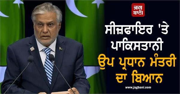 ਇਸਲਾਮਾਬਾਦ : ਭਾਰਤ ਪਾਕਿਸਤਾਨ ਤਣਾਅ ਵਿਚਾਲੇ ਵੱਡੀ ਖਬਰ ਆ ਰਹੀ ਹੈ। ਅਮਰੀਕੀ ਰਾਸ਼ਟਰਪਤੀ ਦੇ ਐਲਾਨ ਤੋਂ ਬਾਅਦ ਹੁਣ ਪਾਕਿਸਤਾਨ ਦੇ ਉਪ ਪ੍ਰਧਨ ਮੰਤਰੀ ਮੁਹੰਮਦ ਅਸ਼ਾਕ ਡਾਰ ਦਾ ਵੀ ਵੱਡਾ ਬਿਆਨ ਸਾਹਮਣੇ ਆ ਗਿਆ ਹੈ। ਇਸ ਦੌਰਾਨ ਉਨ੍ਹਾਂ ਨੇ ਭਾਰਤ ਪਾਕਿਸਤਾਨ ਵਿਚਾਲੇ ਸੀਜ਼ਫਾਇਰ ਉੱਤੇ ਸਹਿਮਤੀ ਜਤਾਈ ਹੈ।