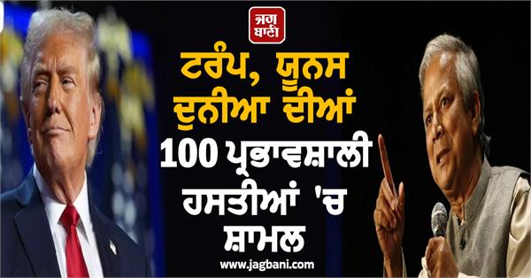 ਇੰਟਰਨੈਸ਼ਨਲ ਡੈਸਕ- ਅਮਰੀਕਾ ਦੇ ਵੱਕਾਰੀ ਟਾਈਮ ਮੈਗਜ਼ੀਨ ਨੇ ਸਾਲ 2025 ਵਿੱਚ ਦੁਨੀਆ ਦੇ 100 ਸਭ ਤੋਂ ਪ੍ਰਭਾਵਸ਼ਾਲੀ ਲੋਕਾਂ ਦੀ ਸੂਚੀ ਜਾਰੀ ਕੀਤੀ ਹੈ। ਇਸ ਸੂਚੀ ਵਿੱਚ ਕਈ ਹੈਰਾਨੀਜਨਕ ਨਾਮ ਹਨ। ਇਸ ਸੂਚੀ ਵਿੱਚ ਅਮਰੀਕੀ ਰਾਸ਼ਟਰਪਤੀ ਡੋਨਾਲਡ ਟਰੰਪ, ਟੇਸਲਾ ਦੇ ਸੀ.ਈ.ਓ ਐਲੋਨ ਮਸਕ ਅਤੇ ਬੰਗਲਾਦੇਸ਼ ਦੀ ਅੰਤਰਿਮ ਸਰਕਾਰ ਦੇ ਮੁੱਖ ਸਲਾਹਕਾਰ ਮੁਹੰਮਦ ਯੂਨਸ ਦੇ ਨਾਮ ਸ਼ਾਮਲ ਹਨ। ਹਾਲਾਂਕਿ ਹੈਰਾਨੀ ਵਾਲੀ ਗੱਲ ਇਹ ਹੈ ਕਿ ਇਸ ਸਾਲ ਕਿਸੇ ਵੀ ਭਾਰਤੀ ਨੂੰ ਦੁਨੀਆ ਦੇ ਸਭ ਤੋਂ ਪ੍ਰਭਾਵਸ਼ਾਲੀ ਲੋਕਾਂ ਦੀ ਸੂਚੀ ਵਿੱਚ ਜਗ੍ਹਾ ਨਹੀਂ ਮਿਲੀ ਹੈ।