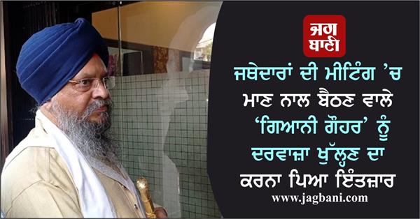 ਅੰਮ੍ਰਿਤਸਰ (ਸਰਬਜੀਤ ਸਿੰਘ, ਜ.ਬ)- ਤਖ਼ਤ ਸ੍ਰੀ ਹਰਿਮੰਦਰ ਸਾਹਿਬ ਜੀ ਪਟਨਾ ਸਾਹਿਬ ਦੇ ਜਥੇਦਾਰ ਸਿੰਘ ਸਾਹਿਬ ਗਿਆਨੀ ਰਣਜੀਤ ਸਿੰਘ ਗੌਹਰ, ਜਿਨਾਂ ਨੂੰ ਪਿਛਲੇ ਸਮੇਂ ’ਚ ਤਖ਼ਤਾਂ ਦੇ ਜਥੇਦਾਰਾਂ ਦੀ ਹਰ ਮੀਟਿੰਗ ਵਿਚ ਬੜੇ ਮਾਣ ਤੇ ਸਤਿਕਾਰ ਨਾਲ ਬਿਠਾਇਆ ਜਾਂਦਾ ਸੀ, ਜਿਨ੍ਹਾਂ ਨੂੰ ਸ੍ਰੀ ਅਕਾਲ ਤਖ਼ਤ ਸਾਹਿਬ ਸਕੱਤਰੇਤ ਦੇ ਅੰਦਰ ਜਾਣ ਲਈ ਬਾਹਰ ਲਗਭਗ 15 ਮਿੰਟ ਤੱਕ ਦਰਵਾਜ਼ਾ ਖੁੱਲ੍ਹਣ ਦਾ ਇੰਤਜ਼ਾਰ ਕਰਨਾ ਪਿਆ। 15 ਮਿੰਟ ਬਾਅਦ ਜਥੇਦਾਰ ਸ੍ਰੀ ਅਕਾਲ ਤਖ਼ਤ ਸਾਹਿਬ ਦੇ ਨਿੱਜੀ ਸਹਾਇਕ ਸਸਪਾਲ ਸਿੰਘ ਨੇ ਆ ਕੇ ਜਥੇਦਾਰ ਗੋਹਰ ਕੋਲੋ ਉਨ੍ਹਾਂ ਦਾ ਪੱਖ ਮਜ਼ਬੂਤ ਕਰਦੇ ਦਸਤਾਵੇਜ਼ ਪ੍ਰਾਪਤ ਕੀਤੇ।