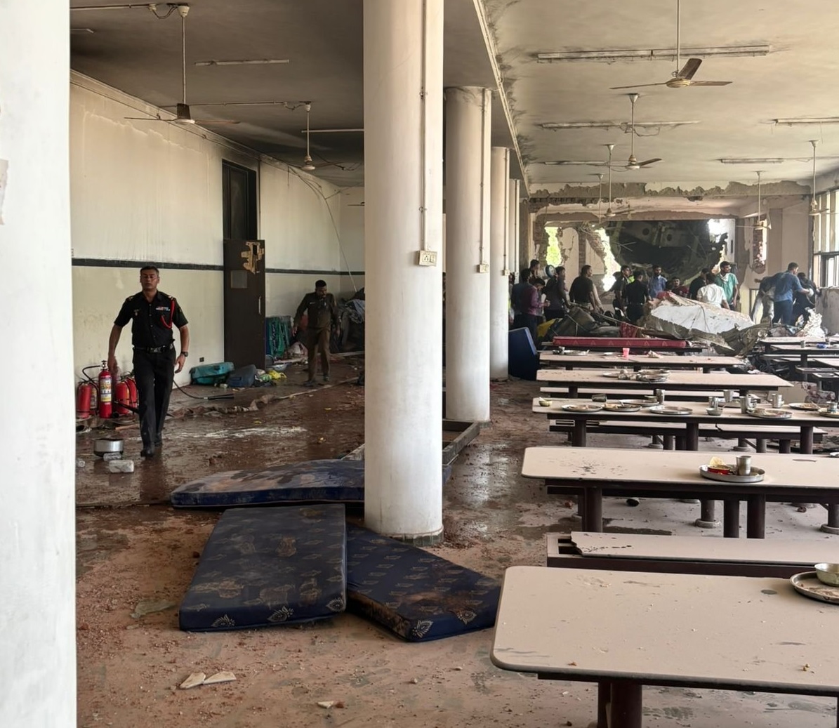 ਹਾਦਸੇ ਦੌਰਾਨ ਜਿਵੇਂ ਹੀ ਜਹਾਜ਼ ਇਮਾਰਤ 'ਤੇ ਡਿੱਗਿਆ, ਇੱਕ ਜ਼ੋਰਦਾਰ ਧਮਾਕਾ ਹੋਇਆ ਅਤੇ ਅੱਗ ਲੱਗ ਗਈ। ਇਸ ਤੋਂ ਬਾਅਦ ਹਰ ਪਾਸੇ ਧੂੰਏਂ ਦੇ ਬੱਦਲ ਦਿਖਾਈ ਦੇਣ ਲੱਗੇ। ਦੱਸਿਆ ਜਾ ਰਿਹਾ ਹੈ ਕਿ ਇਸ ਹੋਸਟਲ ਵਿੱਚ ਬਹੁਤ ਸਾਰੇ ਵਿਦਿਆਰਥੀ ਮੌਜੂਦ ਸਨ। ਉਸ ਸਮੇਂ ਇਮਾਰਤ ਵਿੱਚ ਮੌਜੂਦ ਕਈ ਲੋਕ ਜ਼ਖਮੀ ਹੋ ਗਏ। ਹਾਦਸੇ ਵੇਲੇ ਉਕਤ ਥਾਂ 'ਤੇ ਮੌਜੂਦ ਡਾਕਟਰ ਖਾਣਾ ਖਾ ਰਹੇ ਸਨ।