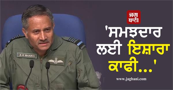 ਵੈੱਬ ਡੈਸਕ- ਭਾਰਤ ਤੇ ਪਾਕਿਸਤਾਨ ਵਿਚਾਲੇ ਹੋਈ ਫ਼ੌਜੀ ਕਾਰਵਾਈ ਬਾਰੇ ਜਾਣਕਾਰੀ ਦੇਣ ਲਈ ਤਿੰਨਾਂ ਫ਼ੌਜੀਆਂ ਦੇ ਮੁਖੀਆਂ ਵੱਲੋਂ ਪ੍ਰੈੱਸ ਬ੍ਰੀਫਿੰਗ ਕਰ ਰਹੇ ਹਨ। ਇਸ ਦੌਰਾਨ ਭਾਰਤੀ ਹਵਾਈ ਸੈਨਾ ਦੇ ਮੁਖੀ ਏ.ਕੇ. ਭਾਰਤੀ ਨੇ ਜਾਣਕਾਰੀ ਦਿੰਦੇ ਹੋਏ ਦੱਸਿਆ ਕਿ ਸਾਡੀ ਲੜਾਈ ਅੱਤਵਾਦ ਨਾਲ ਹੈ, ਪਾਕਿਸਤਾਨ ਨਾਲ ਨਹੀਂ। ਇਸੇ ਵਿਚਾਲੇ ਉਨ੍ਹਾਂ ਨੇ ਇਕ ਕਵਿਤਾ ਰਾਹੀਂ ਪਾਕਿਸਤਾਨ ਨੂੰ ਸੁਨੇਹਾ ਦੇਣ ਦੀ ਕੋਸ਼ਿਸ਼ ਵੀ ਕੀਤੀ।