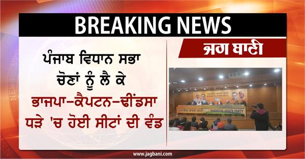 ਨਵੀਂ ਦਿੱਲੀ (ਸੁਨੀਲ ਪਾਂਡੇ)- ਪੰਜਾਬ 'ਚ ਵਿਧਾਨ ਸਭਾ ਚੋਣਾਂ ਨੂੰ ਲੈ ਕੇ ਭਾਜਪਾ, ਕੈਪਟਨ ਅਮਰਿੰਦਰ ਸਿੰਘ ਦੀ ਪਾਰਟੀ ਪੰਜਾਬ ਲੋਕ ਕਾਂਗਰਸ, ਅਕਾਲੀ ਦਲ (ਸੰਯੁਕਤ) ਵਿਚਾਲੇ ਸੀਟਾਂ ਦੀ ਵੰਡ ਹੋ ਗਈ ਹੈ। ਭਾਜਪਾ ਪ੍ਰਧਾਨ ਜੇ.ਪੀ. ਨੱਢਾ ਨੇ ਦਿੱਲੀ 'ਚ ਇਕ ਪ੍ਰੈਸ ਕਾਨਫਰੰਸ ਦੌਰਾਨ ਕਿਹਾ ਕਿ ਪਾਰਟੀ ਪੰਜਾਬ ਵਿਧਾਨ ਸਭਾ ਚੋਣਾਂ 'ਚ 65 ਸੀਟਾਂ 'ਤੇ ਲੜੇਗੀ। ਉਨ੍ਹਾਂ ਕਿਹਾ ਕਿ ਪੰਜਾਬ ਲੋਕ ਕਾਂਗਰਸ 37 ਸੀਟਾਂ ਅਤੇ ਸ਼੍ਰੋਮਣੀ ਅਕਾਲੀ ਦਲ (ਸੰਯੁਕਤ) 15 ਸੀਟਾਂ 'ਤੇ ਚੋਣ ਲੜੇਗੀ। ਇਸ ਦੌਰਾਨ ਨੱਢਾ ਨੇ ਕਿਹਾ ਕਿ ਸਾਡੇ ਲਈ ਚੋਣਾਂ ਬਹੁਤ ਮਹੱਤਵਪੂਰਨ ਹਨ। ਉਨ੍ਹਾਂ ਕਿਹਾ ਕਿ ਚੋਣਾਂ ਦੌਰਾਨ ਸੁਰੱਖਿਆ ਸਭ ਤੋਂ ਮਹੱਤਵਪੂਰਨ ਮੁੱਦਾ ਹੈ।