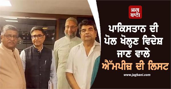 ਵਫ਼ਦ 1 ਭਾਜਪਾ ਸੰਸਦ ਮੈਂਬਰ ਬੈਜਯੰਤ ਪਾਂਡਾ ਦੀ ਅਗਵਾਈ ਹੇਠ ਵਿਦੇਸ਼ ਜਾਵੇਗਾ। ਵਫ਼ਦ ਵਿੱਚ ਭਾਜਪਾ ਦੇ ਸੰਸਦ ਮੈਂਬਰ ਨਿਸ਼ੀਕਾਂਤ ਦੂਬੇ, ਫਾਂਗਨ ਕੋਨਯਕ, ਰੇਖਾ ਸ਼ਰਮਾ, ਅਸਦੁੱਦੀਨ ਓਵੈਸੀ (ਏਆਈਐੱਮਆਈਐੱਮ), ਸਤਨਾਮ ਸੰਧੂ (ਨਾਮਜ਼ਦ), ਸਾਬਕਾ ਮੰਤਰੀ ਗੁਲਾਮ ਨਬੀ ਆਜ਼ਾਦ ਅਤੇ ਸਾਬਕਾ ਵਿਦੇਸ਼ ਸਕੱਤਰ ਹਰਸ਼ ਸ਼੍ਰਿੰਗਲਾ ਸ਼ਾਮਲ ਹਨ।