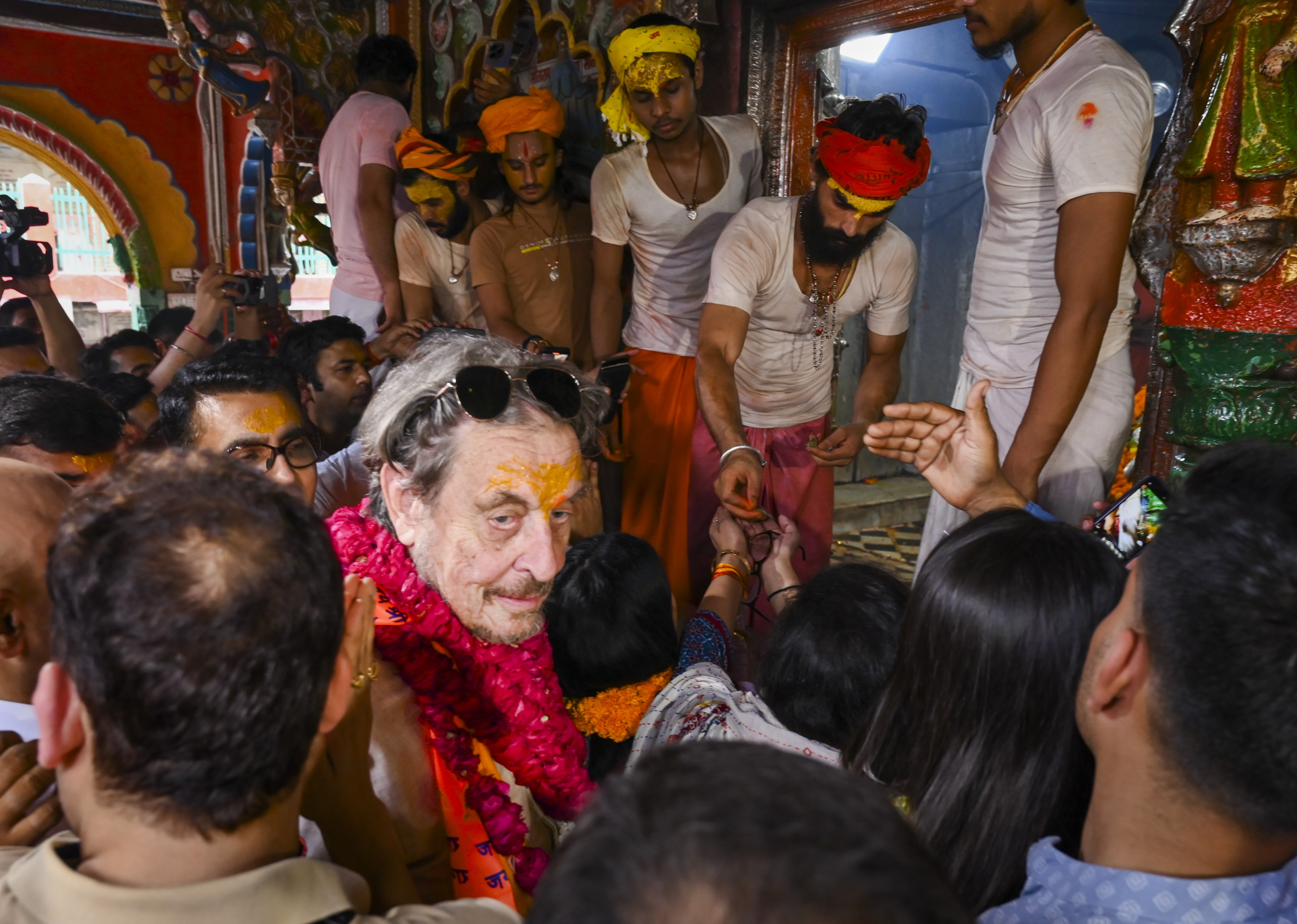 ਇਸ ਤੋਂ ਬਾਅਦ ਐਰੋਲ ਮਸਕ ਹਨੂਮਾਨਗੜ੍ਹੀ ਪਹੁੰਚੇ। ਉਨ੍ਹਾਂ ਦਰਸ਼ਨ ਅਤੇ ਪੂਜਾ ਕੀਤੀ ਅਤੇ ਪਰਿਕਰਮਾ ਕੀਤੀ। ਸੰਕਟਮੋਚਨ ਸੇਵਾ ਦੇ ਰਾਸ਼ਟਰੀ ਪ੍ਰਧਾਨ ਮਹੰਤ ਸੰਜੇ ਦਾਸ ਅਤੇ ਹਨੂਮਾਨਗੜ੍ਹੀ ਦੇ ਸੀਨੀਅਰ ਪੁਜਾਰੀ ਹੇਮੰਤ ਦਾਸ ਨੇ ਉਨ੍ਹਾਂ ਨੂੰ ਰਾਮਨਾਮੀ ਪਟਕਾ ਅਤੇ ਹਨੂਮਾਨਜੀ ਦੀ ਤਸਵੀਰ ਭੇਟ ਕੀਤੀ। ਐਰੋਲ ਮਸਕ ਅਤੇ ਉਨ੍ਹਾਂ ਦੀ ਧੀ ਅਲੈਗਜ਼ੈਂਡਰਾ ਨੂੰ ਗੁਲਾਬ ਦੇ ਫੁੱਲਾਂ ਨਾਲ ਹਾਰ ਪਹਿਨਾਏ ਗਏ। ਹਨੂਮਾਨਜੀ ਦਾ ਤਿਲਕ ਲਗਾਇਆ ਗਿਆ।