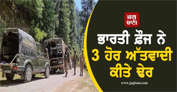 ਜਾਣਕਾਰੀ ਅਨੁਸਾਰ ਸੁਰੱਖਿਆ ਬਲਾਂ ਨੇ ਪਹਿਲਾਂ 1 ਅੱਤਵਾਦੀ ਅਹਿਮਦ ਕੁੱਟੇ ਨੂੰ ਢੇਰ ਕੀਤਾ ਸੀ, ਜੋ ਕਿ ਲਸ਼ਕਰ ਦਾ ਕਮਾਂਡਰ ਦੱਸਿਆ ਜਾ ਰਿਹਾ ਹੈ, ਜਦਕਿ ਇਸ ਮਗਰੋਂ ਮੁਕਾਬਲੇ 'ਚ ਉਸ ਦੇ 2 ਹੋਰ ਸਾਥੀਆਂ ਨੂੰ ਢੇਰ ਕਰ ਦਿੱਤਾ ਗਿਆ ਹੈ।