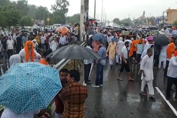 2 ਘੰਟਿਆਂ ਬਾਅਦ ਕਿਸਾਨ ਮੀਂਹ ਦਰਮਿਆਨ ਜੀਟੀ ਰੋਡ ਪਹੁੰਚ ਗਏ ਅਤੇ ਜਾਮ ਲਗਾ ਦਿੱਤਾ। ਜਾਮ ਲਗਣ ਨਾਲ ਦੋਵੇਂ ਪਾਸੇ ਵੱਡੀ ਗਿਣਤੀ 'ਚ ਵਾਹਨ ਫਸ ਗਏ, ਜਿਸ ਕਾਰਨ ਰਾਹਗੀਰਾਂ ਨੂੰ ਭਾਰੀ ਪਰੇਸ਼ਾਨੀ ਝੱਲਣੀ ਪੈ ਰਹੀ ਹੈ। ਕਿਸਾਨਾਂ ਦੀ ਮੰਗ ਹੈ ਕਿ ਝੋਨੇ ਦੀ ਖਰੀਦ ਸ਼ੁਰੂ ਕੀਤੀ ਜਾਵੇ, ਕਿਉਂਕਿ ਖਰੀਦ ਨਾ ਹੋਣ ਕਾਰਨ ਕਿਸਾਨਾਂ ਨੂੰ ਭਾਰੀ ਨੁਕਸਾਨ ਹੋ ਰਿਹਾ ਹੈ। ਇਕ ਪਾਸੇ ਝੋਨੇ ਦੀ ਖਰੀਦ ਨਹੀਂ ਹੋ ਰਹੀ ਹੈ ਤਾਂ ਉੱਥੇ ਹੀ ਮੀਂਹ ਦੀ ਵੀ ਮਾਰ ਕਿਸਾਨਾਂ 'ਤੇ ਪੈ ਰਹੀ ਹੈ। ਖੇਤਾਂ ਤੋਂ ਲੈ ਕੇ ਅਨਾਜ ਮੰਡੀ 'ਚ ਕਿਸਾਨਾਂ ਦਾ ਝੋਨਾ ਖ਼ਰਾਬ ਹੋ ਰਿਹਾ ਹੈ।
