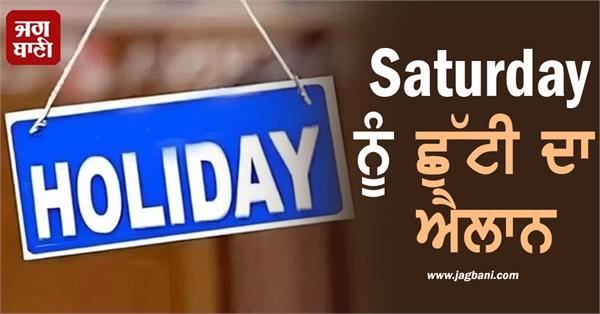 ਵੈੱਬ ਡੈਸਕ : ਮਈ ਮਹੀਨਾ ਖਤਮ ਹੋ ਗਿਆ ਹੈ ਤੇ ਜੂਨ ਚੜ ਗਿਆ ਹੈ। ਅਜਿਹੀ ਸਥਿਤੀ 'ਚ ਜੂਨ ਮਹੀਨੇ ਦੀਆਂ ਛੁੱਟੀਆਂ ਦਾ ਵੀ ਐਲਾਨ ਹੋ ਗਿਆ ਹੈ। ਇਸ ਦੌਰਾਨ ਜੂਨ ਮਹੀਨੇ ਦੀ ਸਭ ਤੋਂ ਪਹਿਲੀ ਛੁੱਟੀ ਇਸ ਸ਼ਨੀਵਾਰ ਆਉਣ ਵਾਲੀ ਹੈ। ਇਸ ਦੌਰਾਨ ਦੇਸ਼ ਦੇ ਵੱਖ-ਵੱਖ ਸੂਬਿਆਂ ਵਿਚ ਛੁੱਟੀ ਦਾ ਐਲਾਨ ਕੀਤਾ ਜਾਂਦਾ ਹੈ।