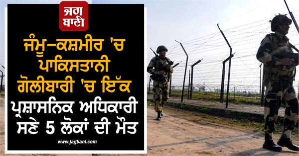 ਜੰਮੂ (ਏਜੰਸੀ)- ਜੰਮੂ-ਕਸ਼ਮੀਰ ਦੇ ਰਾਜੌਰੀ, ਪੁੰਛ ਅਤੇ ਜੰਮੂ ਜ਼ਿਲ੍ਹਿਆਂ ਵਿੱਚ ਸ਼ਨੀਵਾਰ ਤੜਕੇ ਪਾਕਿਸਤਾਨ ਵੱਲੋਂ ਕੀਤੀ ਗਈ ਗੋਲੀਬਾਰੀ ਵਿੱਚ ਇੱਕ ਸੀਨੀਅਰ ਪ੍ਰਸ਼ਾਸਨਿਕ ਅਧਿਕਾਰੀ ਸਮੇਤ 5 ਲੋਕ ਮਾਰੇ ਗਏ ਅਤੇ ਕਈ ਹੋਰ ਜ਼ਖਮੀ ਹੋ ਗਏ। ਅਧਿਕਾਰੀਆਂ ਨੇ ਇਹ ਜਾਣਕਾਰੀ ਦਿੱਤੀ। ਅਧਿਕਾਰੀਆਂ ਨੇ ਦੱਸਿਆ ਕਿ ਰਾਜੌਰੀ ਦੇ ਵਧੀਕ ਜ਼ਿਲ੍ਹਾ ਵਿਕਾਸ ਕਮਿਸ਼ਨਰ ਰਾਜ ਕੁਮਾਰ ਥਾਪਾ ਅਤੇ ਉਨ੍ਹਾਂ ਦੇ ਸਟਾਫ਼ ਦੇ 2 ਕਰਮਚਾਰੀ ਸ਼ਹਿਰ ਵਿੱਚ ਉਨ੍ਹਾਂ (ਥਾਪਾ) ਦੇ ਘਰ 'ਤੇ ਇੱਕ ਸ਼ੈੱਲ ਡਿੱਗਣ ਕਾਰਨ ਗੰਭੀਰ ਰੂਪ ਵਿਚ ਜ਼ਖ਼ਮੀ ਹੋ ਗਏ। ਉਨ੍ਹਾਂ ਕਿਹਾ ਕਿ ਸਾਰਿਆਂ ਨੂੰ ਸਰਕਾਰੀ ਮੈਡੀਕਲ ਕਾਲਜ ਲਿਜਾਇਆ ਗਿਆ, ਜਿੱਥੇ ਥਾਪਾ ਨੇ ਜ਼ਖ਼ਮਾਂ ਦੀ ਤਾਬ ਨਾ ਝੱਲਦਿਆਂ ਦਮ ਤੋੜ ਦਿੱਤਾ। ਮੁੱਖ ਮੰਤਰੀ ਉਮਰ ਅਬਦੁੱਲਾ ਨੇ ਥਾਪਾ ਦੀ ਮੌਤ 'ਤੇ ਦੁੱਖ ਪ੍ਰਗਟ ਕੀਤਾ ਹੈ।
