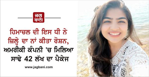 ਸ਼ਿਮਲਾ - ਹਿਮਾਚਲ ਦੀ ਧੀ ਨੂੰ ਅਮਰੀਕਾ ਦੀ ਕੰਪਨੀ 'ਚ ਸਾਢੇ 42 ਲੱਖ ਤਨਖਾਹ ਦਾ ਸਾਲਾਨਾ ਪੈਕੇਜ ਮਿਲਿਆ ਹੈ। ਜ਼ਿਲ੍ਹਾ ਕੁੱਲੂ ਦੇ ਜਿਆ ਦੀ ਰਹਿਣ ਵਾਲੀ 22 ਸਾਲਾ ਸੰਧਿਆ ਢੀਂਗਰਾ ਦੀ ਇਸ ਉਪਲੱਬਧੀ ਨਾਲ ਪਰਿਵਾਰ ਦੇ ਲੋਕਾਂ 'ਚ ਖੁਸ਼ੀ ਦਾ ਮਾਹੌਲ ਹੈ। ਸੰਧਿਆ ਨੂੰ ਅਮਰੀਕਾ ਦੀ ਅਡੋਬ ਕੰਪਨੀ ਨੇ ਨੌਕਰੀ ਦਿੱਤੀ ਹੈ।