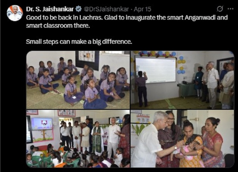 ਨਰਮਦਾ, ਗੁਜਰਾਤ: ਵਿਦੇਸ਼ ਮੰਤਰੀ ਐੱਸ ਜੈਸ਼ੰਕਰ ਨੇ ਮੰਗਲਵਾਰ ਨੂੰ ਗੁਜਰਾਤ ਦੇ ਨਰਮਦਾ ਜ਼ਿਲੇ ਦੇ ਲਛਰਾਸ ਪਿੰਡ ਵਿੱਚ ਵਿਦਿਆਰਥੀਆਂ ਲਈ ਸਮਾਰਟ ਕਲਾਸਾਂ ਦਾ ਉਦਘਾਟਨ ਕੀਤਾ। ਨਾਲ ਹੀ ਕਿਹਾ ਕਿ ਕਿਸ ਤਰ੍ਹਾਂ ਮੋਬਾਈਲ ਫੋਨ ਦੇ ਯੁੱਗ ਵਿੱਚ ਸਮਾਰਟ ਕਲਾਸਾਂ ਵਿਦਿਆਰਥੀਆਂ ਨੂੰ ਕਲਾਸਰੂਮ ਵਿੱਚ ਬਿਜ਼ੀ ਰੱਖਣ ਵਿੱਚ ਮਦਦ ਕਰਦੀਆਂ ਹਨ।