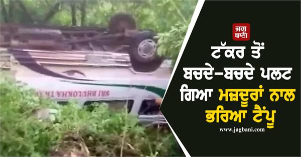 ਉਸ ਨੇ ਦੱਸਿਆ ਕਿ ਜਦੋਂ ਉਹ ਵਾਪਸ ਪਰਤ ਰਹੇ ਸਨ, ਉਦੋਂ ਇਕ ਹੋਰ ਵਾਹਨ ਨਾਲ ਟਕਰਾਉਣ ਤੋਂ ਬਚਣ ਦੀ ਕੋਸ਼ਿਸ਼ 'ਚ ਟੈਂਪੂ ਡਰਾਈਵਰ ਨੇ ਵਾਹਨ ਤੋਂ ਕੰਟਰੋਲ ਗੁਆ ਦਿੱਤਾ, ਜਿਸ ਕਾਰਨ ਟੈਂਪੂ ਪਲਟ ਗਿਆ ਅਤੇ 26 ਲੋਕ ਜ਼ਖਮੀ ਹੋ ਗਏ। ਮਜ਼ਦੂਰਾਂ ਦਾ ਰੌਲਾ ਸੁਣ ਕੇ ਸਥਾਨਕ ਲੋਕ ਉਨ੍ਹਾਂ ਦੀ ਮਦਦ ਲਈ ਦੌੜੇ। ਬਾਅਦ 'ਚ ਮਜ਼ਦੂਰਾਂ ਨੂੰ ਐਂਬੂਲੈਂਸ ਤੋਂ ਇਕ ਹਸਪਤਾਲ ਲਿਜਾਇਆ ਗਿਆ। ਪੁਲਸ ਨੇ ਦੱਸਿਆ ਕਿ ਇਕ ਬੱਚਾ ਗੰਭੀਰ ਰੂਪ ਨਾਲ ਜ਼ਖ਼ਮੀ ਹੋ ਗਿਆ ਹੈ ਅਤੇ ਉਸ ਨੂੰ ਇਲਾਜ ਲਈ ਪੀਜੀਆਈ ਚੰਡੀਗੜ੍ਹ ਭੇਜਿਆ ਗਿਆ ਹੈ। ਉਨ੍ਹਾਂ ਦੱਸਿਆ ਕਿ ਇਸ ਹਾਦਸੇ ਦੇ ਸੰਬੰਧ 'ਚ ਮਾਮਲਾ ਦਰਜ ਕਰ ਲਿਆ ਗਿਆ ਹੈ। ਪੁਲਸ ਸੁਪਰਡੈਂਟ ਅਮਿਤ ਯਾਦਵ ਨੇ ਦੱਸਿਆ ਕਿ ਮਾਮਲੇ ਦੀ ਜਾਂਚ ਜਾਰੀ ਹੈ।