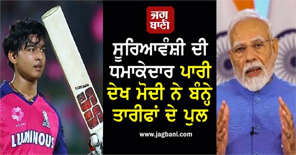 ਮੋਦੀ ਨੇ ਬਿਹਾਰ ’ਚ ‘ਖੋਲੋ ਇੰਡੀਆ ਯੁਵਾ ਖੇਡਾਂ’ ਦੇ ਉਦਘਾਟਨ ਦੌਰਾਨ ਆਪਣੇ ਵੀਡੀਓ ਸੰਬੋਧਨ ’ਚ ਸੂਰਿਆਵੰਸ਼ੀ ਦੀ ਬੱਲੇਬਾਜ਼ੀ ਦਾ ਜ਼ਿਕਰ ਕੀਤਾ। ਮੋਦੀ ਨੇ ਕਿਹਾ ਕਿ ਮੈਂ ਆਈ. ਪੀ. ਐਲ ਵਿਚ ਬਿਹਾਰ ਦੇ ਬੇਟੇ ਵੈਭਵ ਸੂਰਿਆਵੰਸ਼ੀ ਦਾ ਸ਼ਾਨਦਾਰ ਪ੍ਰਦਰਸ਼ਨ ਦੇਖਿਆ ਹੈ। ਇਨੀ ਘੱਟ ਉਮਰ ’ਚ ਵੈਭਵ ਨੇ ਇੰਨਾ ਵੱਡਾ ਰਿਕਾਰਡ ਬਣਾਇਆ ਹੈ। ਵੈਭਵ ਦੇ ਪ੍ਰਦਰਸ਼ਨ ਪਿੱਛੇ ਸਖਤ ਮਿਹਨਤ ਹੈ।