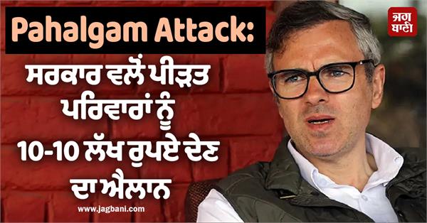 ਸ਼੍ਰੀਨਗਰ- ਜੰਮੂ-ਕਸ਼ਮੀਰ ਸਰਕਾਰ ਨੇ ਪਹਿਲਗਾਮ ਅੱਤਵਾਦੀ ਹਮਲੇ 'ਚ ਮਾਰੇ ਗਏ ਹਰੇਕ ਵਿਅਕਤੀ ਦੇ ਪਰਿਵਾਰ ਨੂੰ 10-10 ਲੱਖ ਰੁਪਏ ਦੀ ਮੁਆਵਜ਼ਾ ਰਾਸ਼ੀ ਦੇਣ ਦਾ ਐਲਾਨ ਕੀਤਾ। ਇਸ ਐਲਾਨ ਤੋਂ ਬਾਅਦ ਜੰਮੂ-ਕਸ਼ਮੀਰ ਦੇ ਮੁੱਖ ਮੰਤਰੀ ਉਮਰ ਅਬਦੁੱਲਾ ਨੇ 'ਐਕਸ' 'ਤੇ ਇਕ ਪੋਸਟ 'ਚ ਕਿਹਾ ਕਿ ਮੈਂ ਕੱਲ੍ਹ ਪਹਿਲਗਾਮ ਵਿਚ ਹੋਏ ਅੱਤਵਾਦੀ ਹਮਲੇ ਤੋਂ ਬਹੁਤ ਹੈਰਾਨ ਅਤੇ ਦੁਖੀ ਹਾਂ। ਬੇਕਸੂਰ ਨਾਗਰਿਕਾਂ ਵਿਰੁੱਧ ਇਸ ਬੇਰਹਿਮ ਅਤੇ ਅਣਮਨੁੱਖੀ ਕਾਰਵਾਈ ਦੀ ਸਾਡੇ ਸਮਾਜ 'ਚ ਕੋਈ ਥਾਂ ਨਹੀਂ ਹੈ। ਅਸੀਂ ਇਸ ਦੀ ਸਖ਼ਤ ਨਿੰਦਾ ਕਰਦੇ ਹਾਂ। ਅਸੀਂ ਮਰਨ ਵਾਲਿਆਂ ਪ੍ਰਤੀ ਆਪਣੀ ਹਮਦਰਦੀ ਪ੍ਰਗਟ ਕਰਦੇ ਹਾਂ।