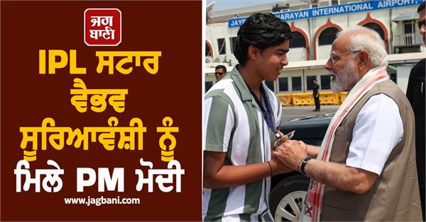 ਪਟਨਾ (ਏਜੰਸੀ)- ਪ੍ਰਧਾਨ ਮੰਤਰੀ ਨਰਿੰਦਰ ਮੋਦੀ ਨੇ ਸ਼ੁੱਕਰਵਾਰ ਨੂੰ ਬਿਹਾਰ ਦੇ ਪ੍ਰਤਿਭਾਸ਼ਾਲੀ ਕ੍ਰਿਕਟਰ ਵੈਭਵ ਸੂਰਿਆਵੰਸ਼ੀ ਨਾਲ ਮੁਲਾਕਾਤ ਕੀਤੀ, ਜੋ ਹਾਲ ਹੀ ਵਿੱਚ ਇੰਡੀਅਨ ਪ੍ਰੀਮੀਅਰ ਲੀਗ (ਆਈ.ਪੀ.ਐੱਲ.) ਵਿੱਚ ਸੈਂਕੜਾ ਲਗਾਉਣ ਵਾਲੇ ਸਭ ਤੋਂ ਘੱਟ ਉਮਰ ਦੇ ਖਿਡਾਰੀ ਬਣੇ ਹਨ। ਪ੍ਰਧਾਨ ਮੰਤਰੀ ਮੋਦੀ ਨੇ ਪਟਨਾ ਹਵਾਈ ਅੱਡੇ 'ਤੇ ਸੂਰਿਆਵੰਸ਼ੀ ਨਾਲ ਆਪਣੀ ਮੁਲਾਕਾਤ ਦੀਆਂ ਤਸਵੀਰਾਂ ਆਪਣੇ 'ਐਕਸ' ਹੈਂਡਲ 'ਤੇ ਸਾਂਝੀਆਂ ਕੀਤੀਆਂ।