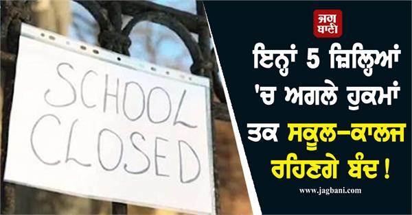ਮੌਜੂਦਾ ਸਥਿਤੀ ਦੇ ਮੱਦੇਨਜ਼ਰ ਜੰਮੂ-ਕਸ਼ਮੀਰ ਦੇ ਸਾਂਬਾ, ਕਠੂਆ, ਜੰਮੂ, ਰਾਜੌਰੀ ਅਤੇ ਪੁੰਛ ਜ਼ਿਲ੍ਹਿਆਂ ਵਿੱਚ ਸਾਰੇ ਸਕੂਲ-ਕਾਲਜ ਅਤੇ ਵਿਦਿਅਕ ਸੰਸਥਾਵਾਂ ਅਗਲੇ ਹੁਕਮਾਂ ਤਕ ਬੰਦ ਰਹਿਣਗੀਆਂ।