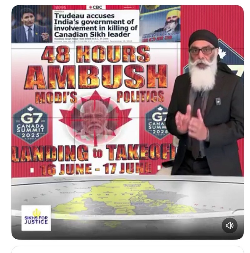 ਖਾਲਿਸਤਾਨ ਸਮਰਥਕ ਪੀ.ਐਮ ਮੋਦੀ ਨੂੰ ਜੀ7 ਸੰਮੇਲਨ ਵਿੱਚ ਸੱਦਾ ਦਿੱਤੇ ਜਾਣ ਦਾ ਵਿਰੋਧ ਕਰ ਰਹੇ ਸਨ, ਜਿਸ ਦੌਰਾਨ 'ਕਿੱਲ ਮੋਦੀ' ('ਮੋਦੀ ਨੂੰ ਮਾਰੋ') ਦੇ ਨਾਅਰੇ ਲਗਾਏ ਗਏ। ਕੈਨੇਡੀਅਨ ਪੀ.ਐਮ ਮਾਰਕ ਕਾਰਨੀ ਨੇ 15 ਤੋਂ 17 ਜੂਨ ਤੱਕ ਅਲਬਰਟਾ ਵਿੱਚ ਹੋਣ ਵਾਲੇ ਜੀ-7 ਸੰਮੇਲਨ ਲਈ ਭਾਰਤੀ ਪ੍ਰਧਾਨ ਮੰਤਰੀ ਨਰਿੰਦਰ ਮੋਦੀ ਨੂੰ ਸੱਦਾ ਦਿੱਤਾ ਹੈ। ਸ਼ੁੱਕਰਵਾਰ ਨੂੰ ਦੋਵਾਂ ਨੇਤਾਵਾਂ ਨੇ ਇੱਕ ਦੂਜੇ ਨਾਲ ਫ਼ੋਨ 'ਤੇ ਗੱਲ ਕੀਤੀ।