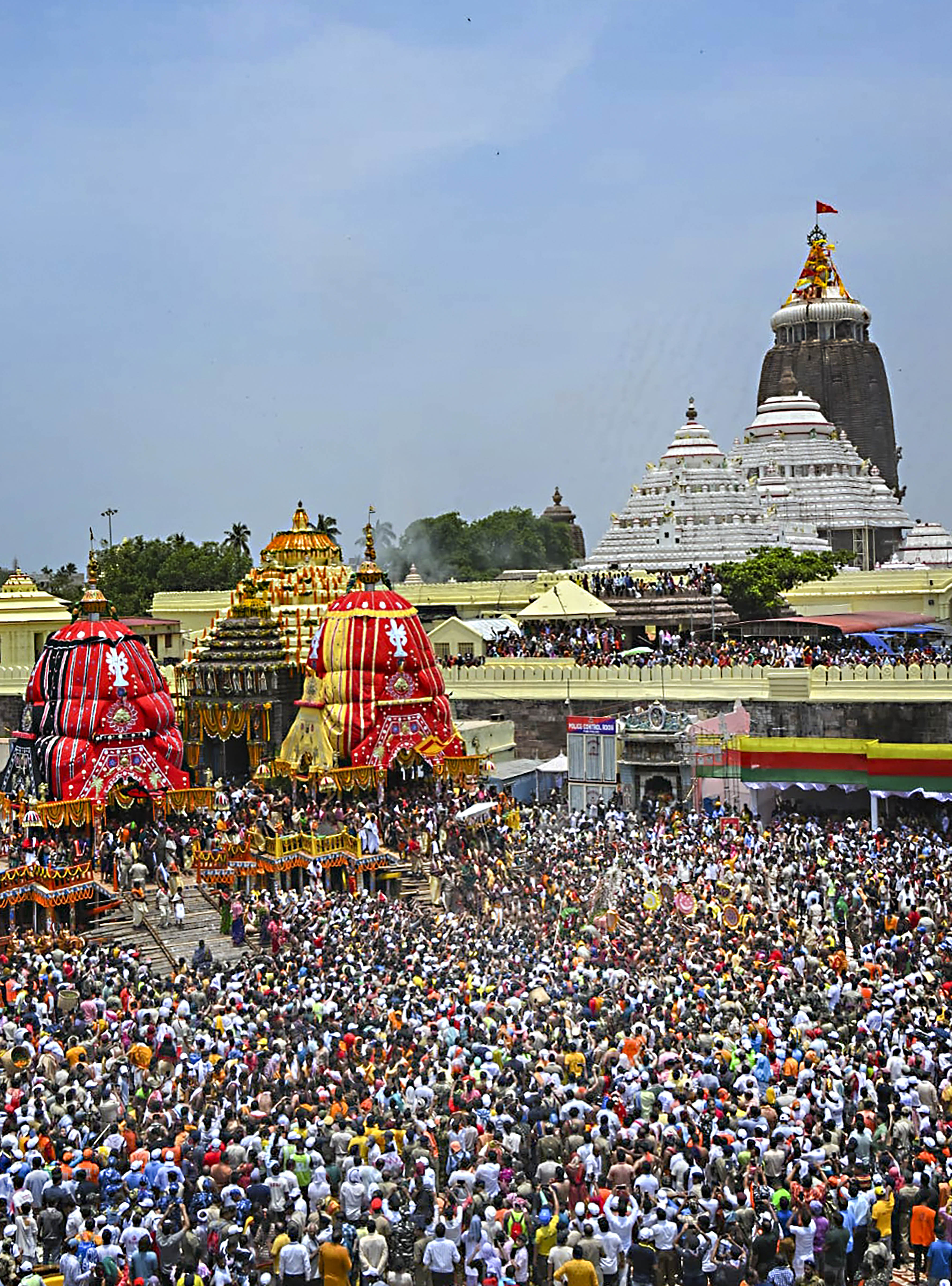 ਪੁਰੀ (ਭਾਸ਼ਾ)- ਭਗਵਾਨ ਜਗਨਨਾਥ ਦੀ ਸਾਲਾਨਾ ਰਥ ਯਾਤਰਾ 'ਚ ਸ਼ਾਮਲ ਹੋਣ ਲਈ ਹਜ਼ਾਰਾਂ ਸ਼ਰਧਾਲੂ ਪੁਰੀ ਪਹੁੰਚੇ ਹਨ ਅਤੇ ਓਡੀਸ਼ਾ ਸਰਕਾਰ ਨੇ 146ਵੀਂ ਰਥ ਯਾਤਰਾ ਲਈ ਪੂਰੇ ਬੰਦੋਬਸਤ ਕੀਤੇ ਹਨ। ਅਧਿਕਾਰੀਆਂ ਨੇ ਇਹ ਜਾਣਕਾਰੀ ਦਿੱਤੀ। ਟਰਾਂਸਪੋਰਟ ਕਮਿਸ਼ਨਰ ਅਮਿਤਾਭ ਠਾਕੁਰ ਨੇ ਦੱਸਿਆ ਕਿ ਸੁਰੱਖਿਆ ਫ਼ੋਰਸਾਂ ਦੀਆਂ 180 ਪਲਾਟੂਨ ਤਾਇਨਾਤ ਕੀਤੀਆਂ ਗਈਆਂ ਹਨ। ਇਕ ਪਲਾਟੂਨ 'ਚ 30 ਜਵਾਨ ਹੁੰਦੇ ਹਨ। ਇਕ ਅਧਿਕਾਰੀ ਨੇ ਦੱਸਿਆ ਕਿ ਰਥ ਯਾਤਰਾ ਲਈ 125 ਵਿਸ਼ੇਸ਼ ਰੇਲਾਂ ਪੁਰੀ ਲਈ ਚਲਾਈਆਂ ਜਾ ਰਹੀਆਂ ਹਨ।